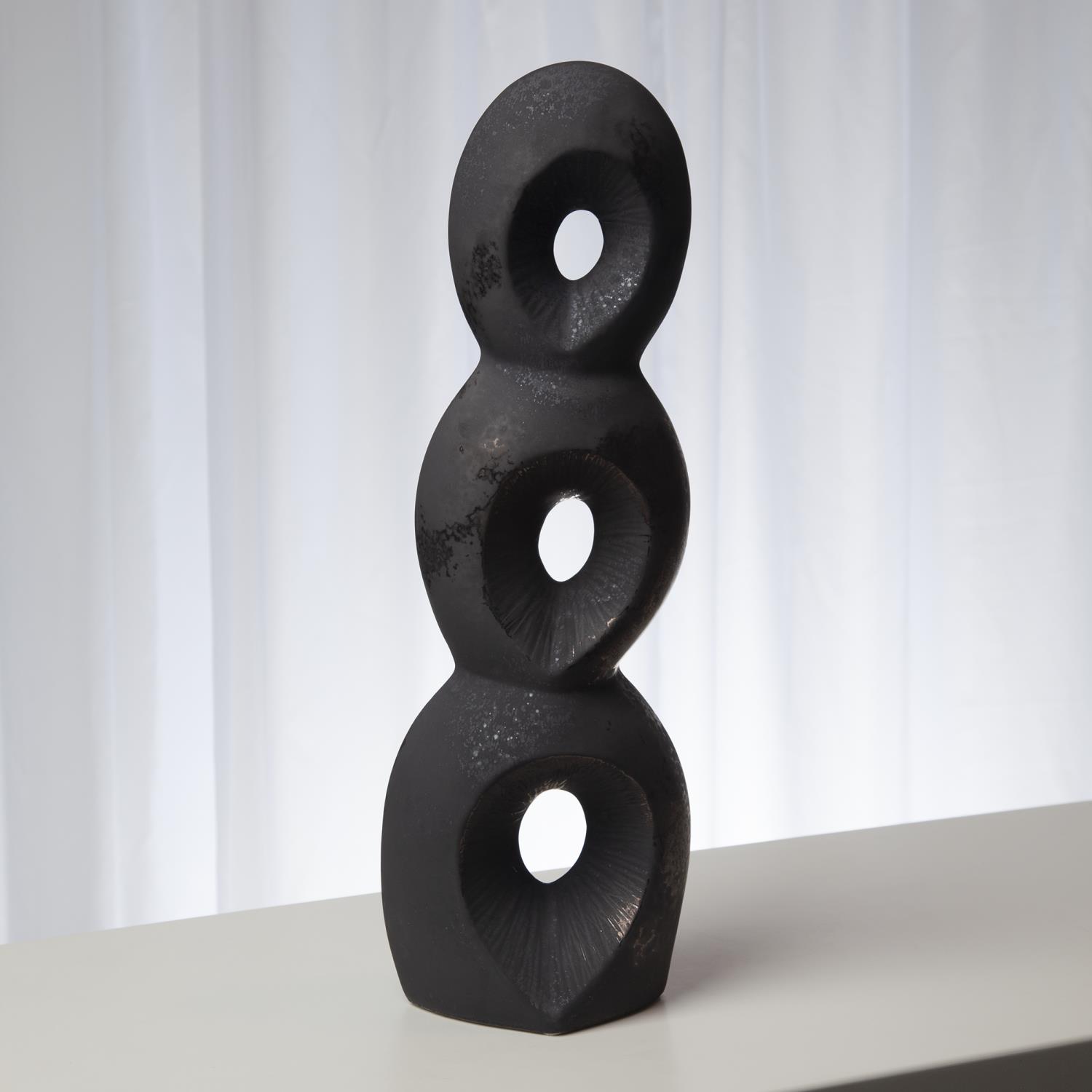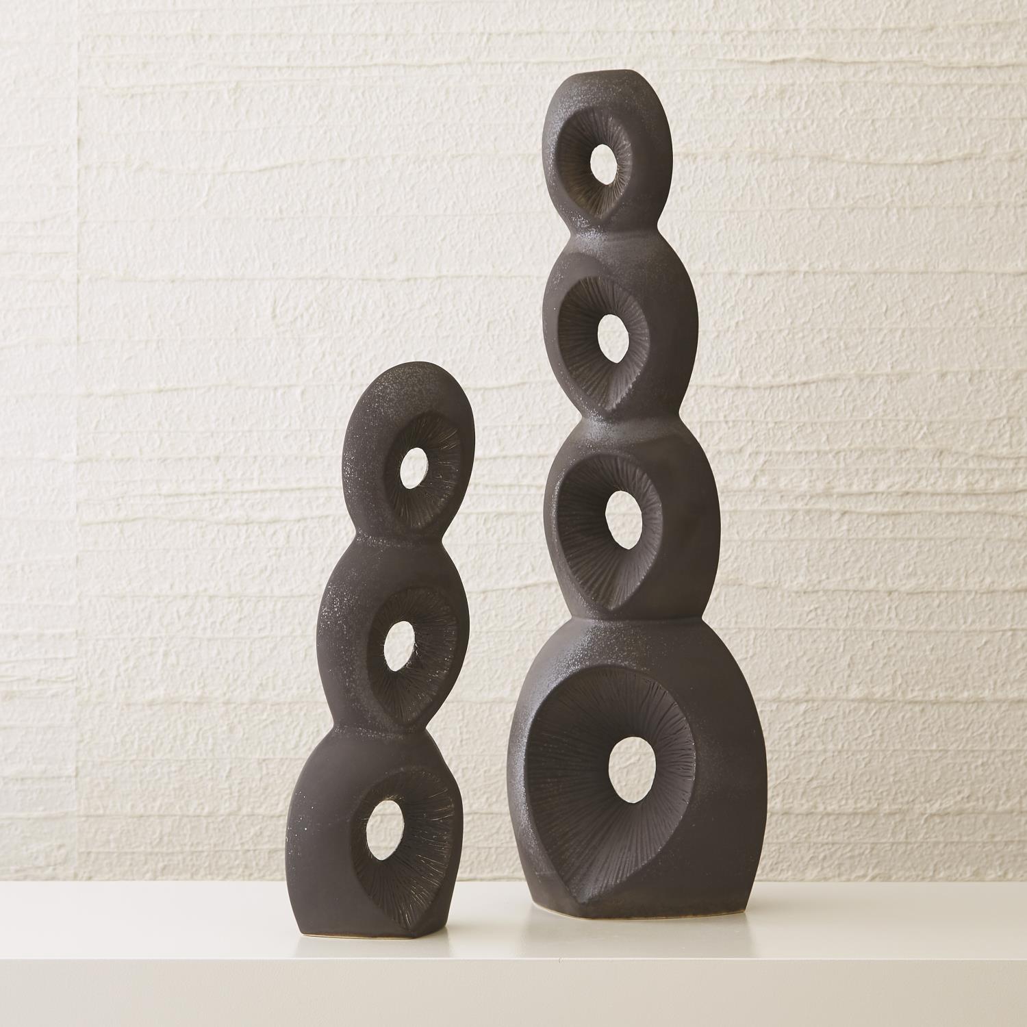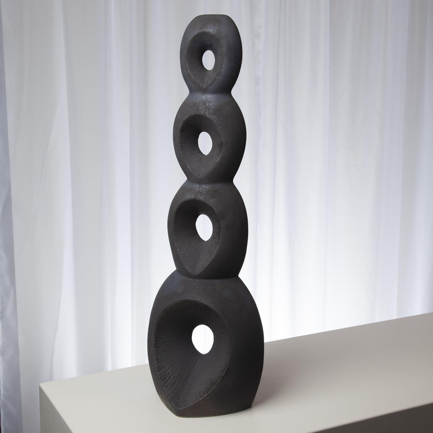 Inspired by ancient, spiritual monuments, the Totem collection of sculptures and vases are crafted of porcelain finished in a highly reactive black-bronze glaze.