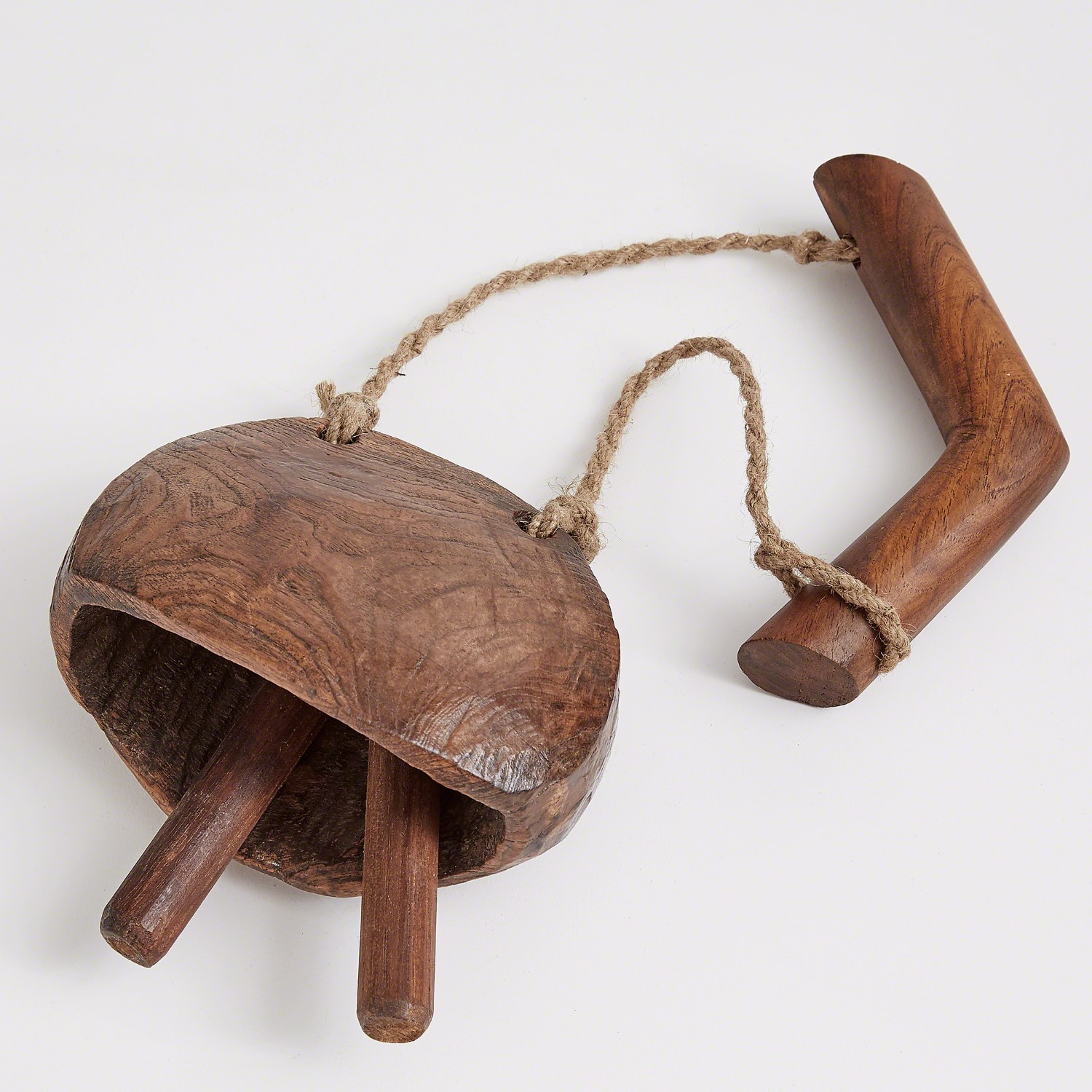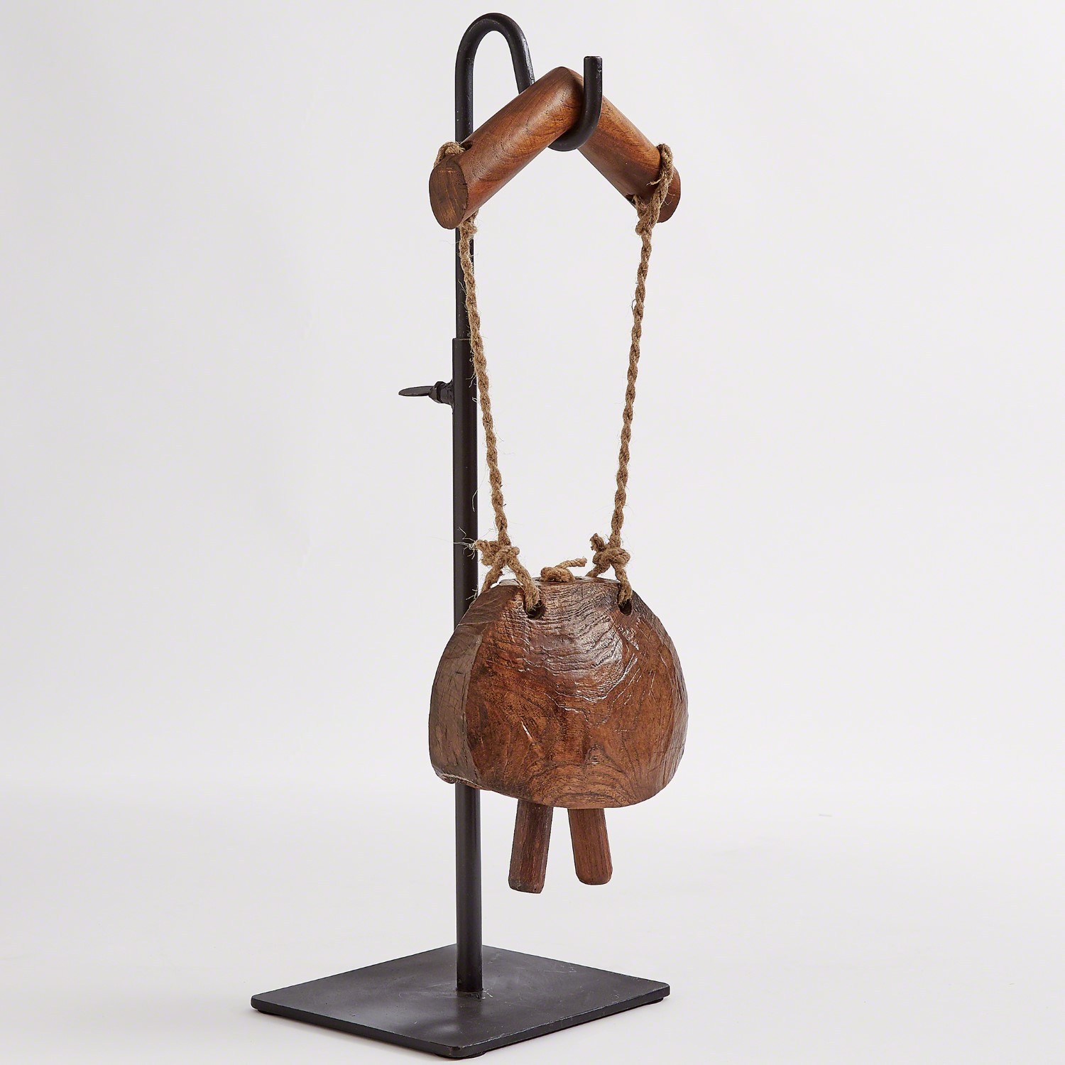 牛羊用的鈴鐺傳統上以木頭雕刻而成,因為金屬鈴鐺十分珍貴且易被竊取。如今這類木鈴已十分稀有且難以尋獲,我們的作品皆安置於鐵製底座上陳列,每一件都獨一無二,富有歷史韻味。