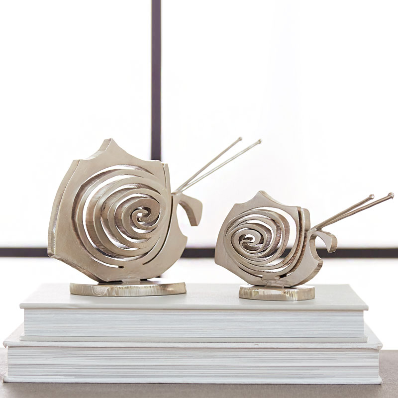 我們每一隻別具風格的蝸牛,皆由厚實鐵塊以蜿蜒切線精雕而成,隨後巧妙推出立體造型。簡約中見匠心,鋼鐵之中蘊藏生命的律動。