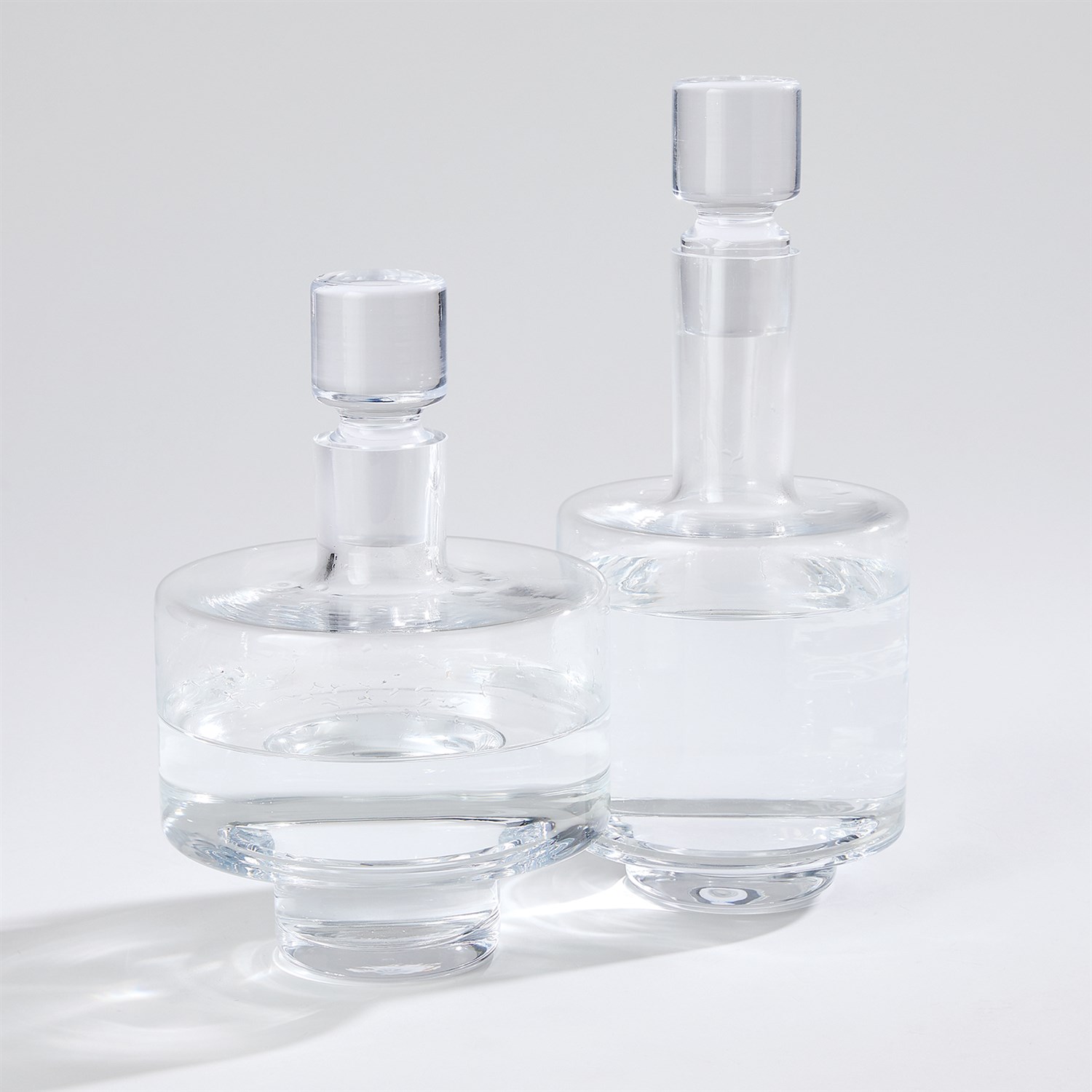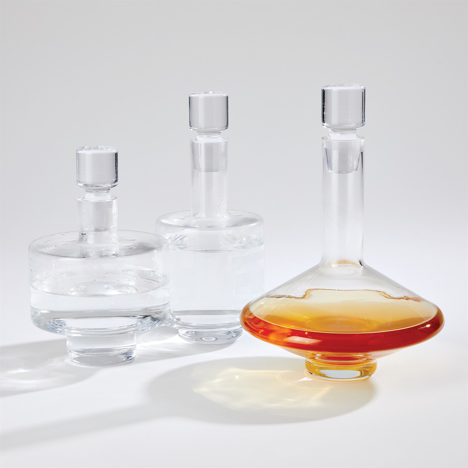 The Jensen Carafes are crafted of clear Polish cast glass and feature sleek, sophisticated silhouettes. Available in three sizes.