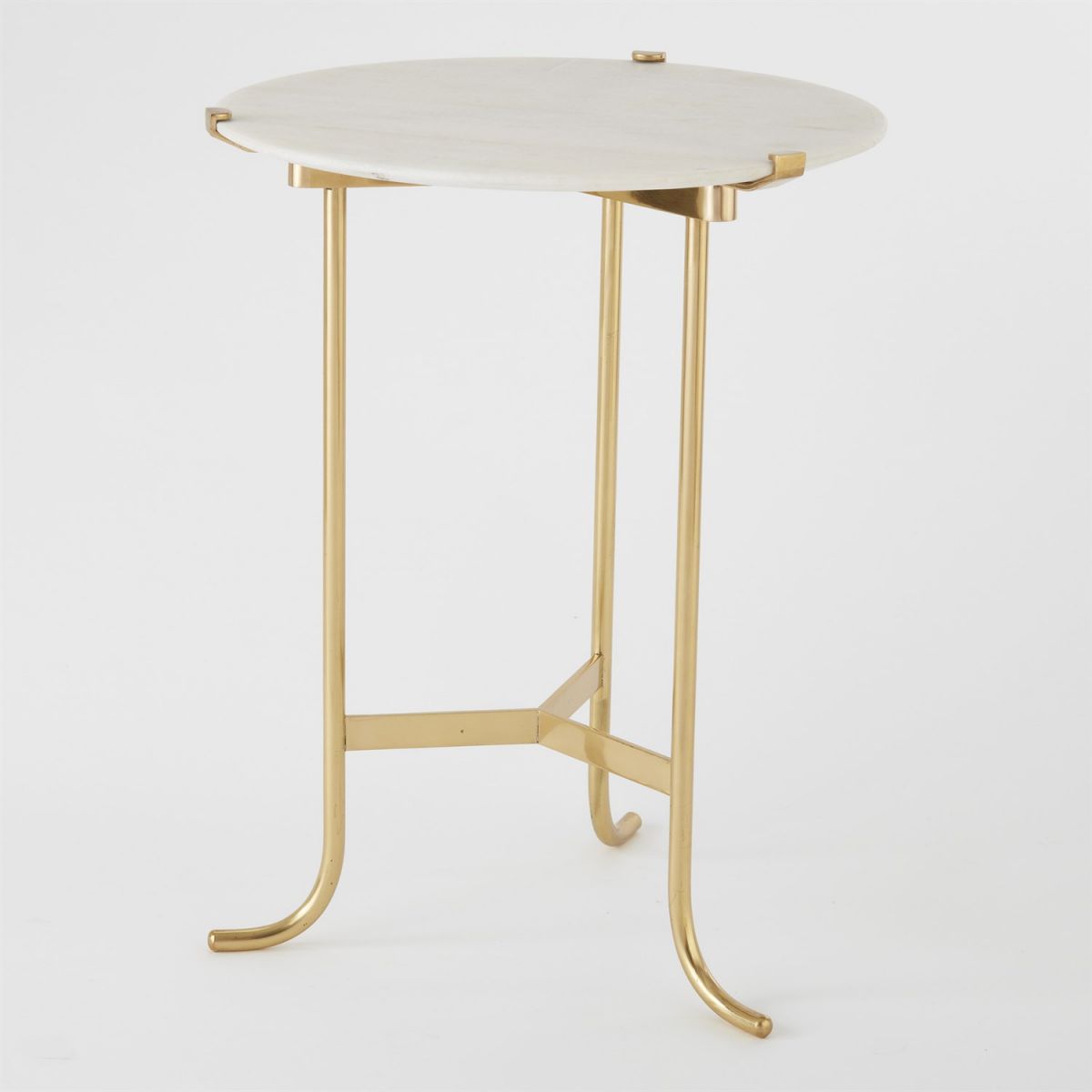 Dainty and graceful, our Plie′ Table in polished brass and white honed marble stands at attention. The table is simply elegant and neutral enough to compliment any space.