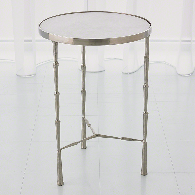 Individual iron spikes are forged together to create the Spike Accent Table. White marble top.