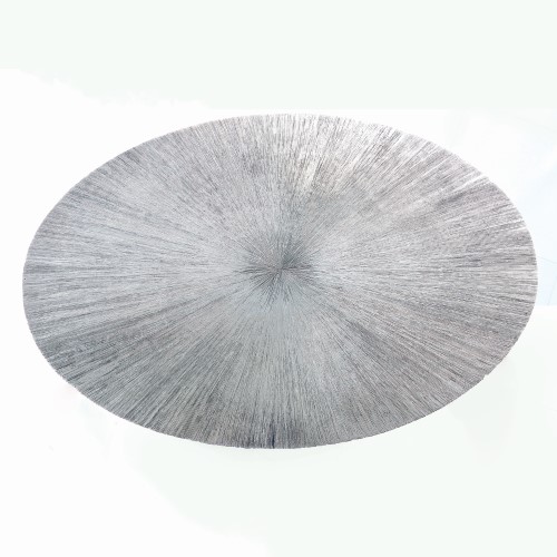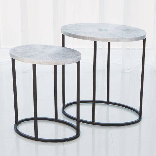 A beautiful, etched sunburst is cast into the surface of each Striated Accent Table. The striated pattern on cast aluminum gives the pattern a unique texture and the appearance of artisanal hand crafting. Bases are made of mild steel.
