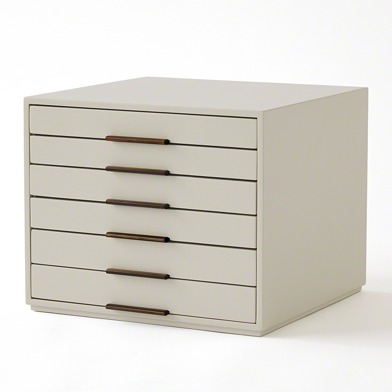 This modern and elegant organizer is a home for the small things in life from earrings, jewelry, pens and eyewear. Crafted in Haze lacquer with warm bronze handles. Drawers are divided and lined in Haze felt.