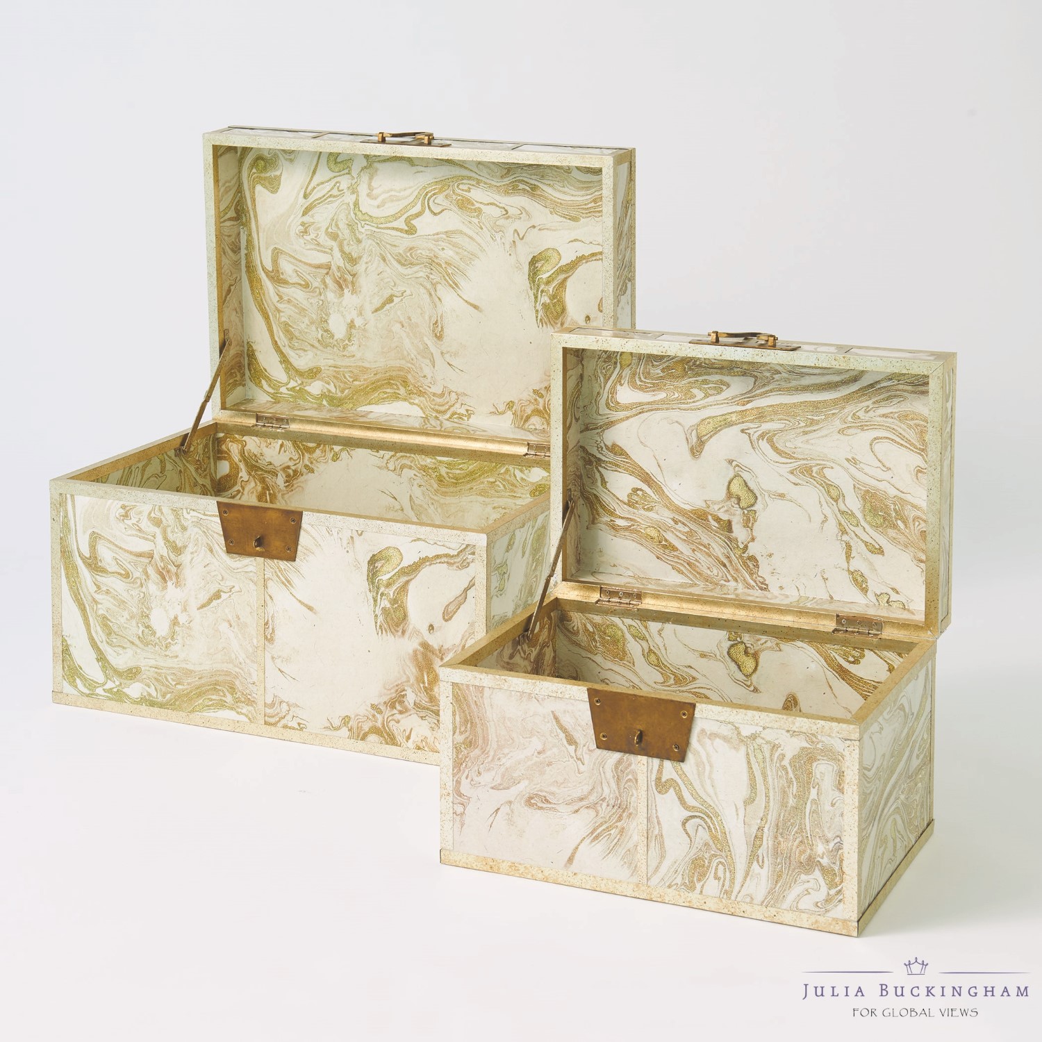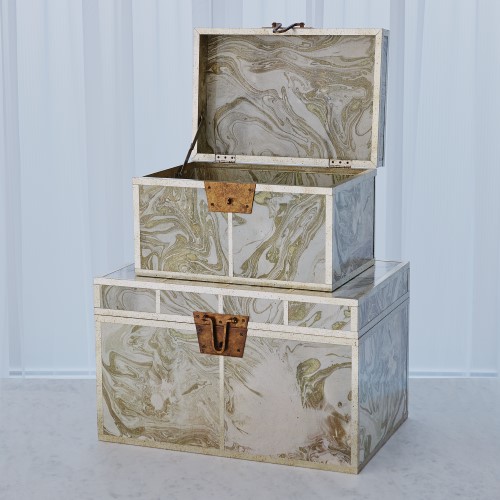 Just as magical as the Treasure Trays, we have also introduced a stunning, marbleized Treasure Trunk. Offered in two sizes, your favorite worldly possessions will be more than happy, tucked away in this elegant metal marvel.