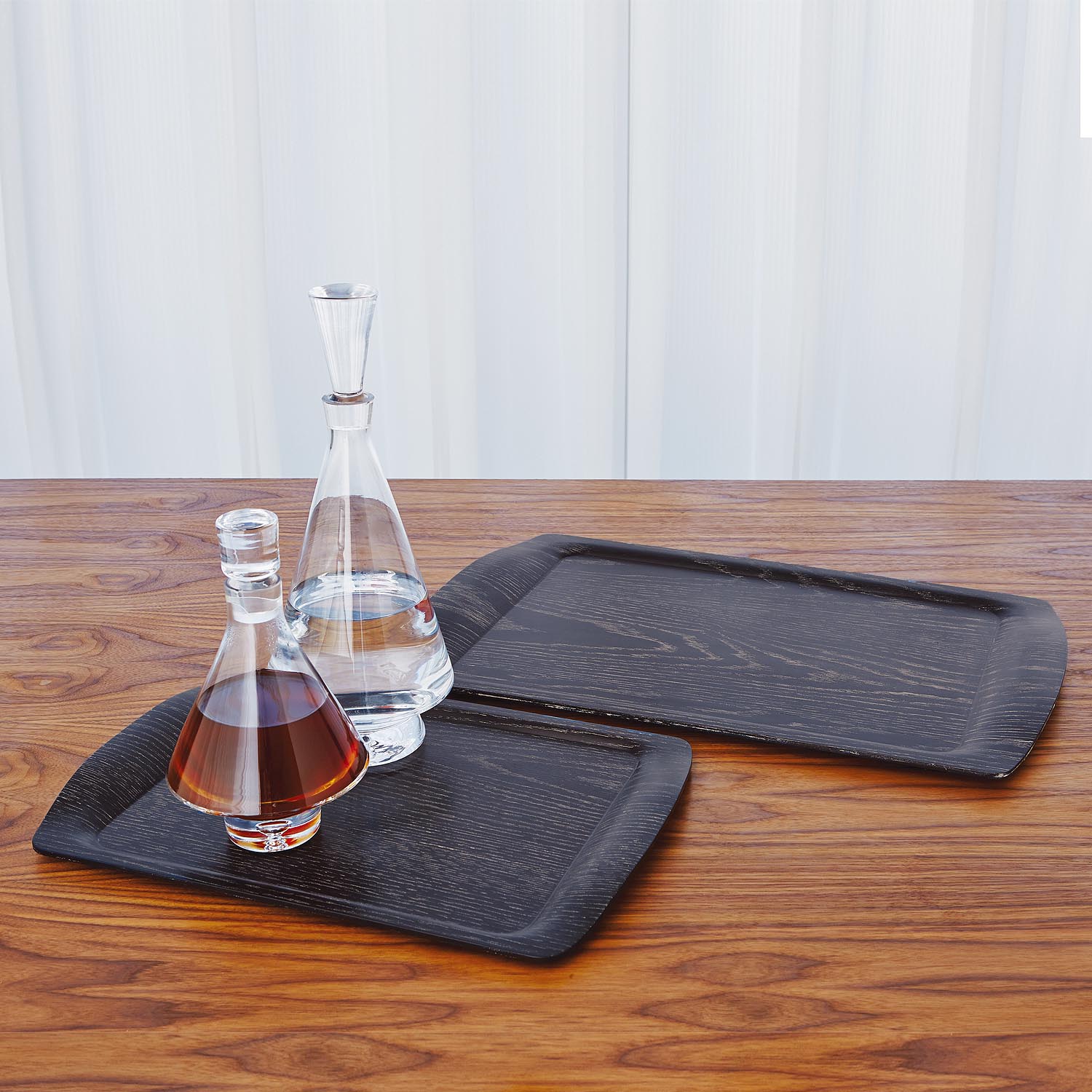 What started out as a completely flat piece of wood, ends up a dapper little tray. Steam heat and pressure mold the wood into a softly contoured tray in a handsome black cerused oak finish.