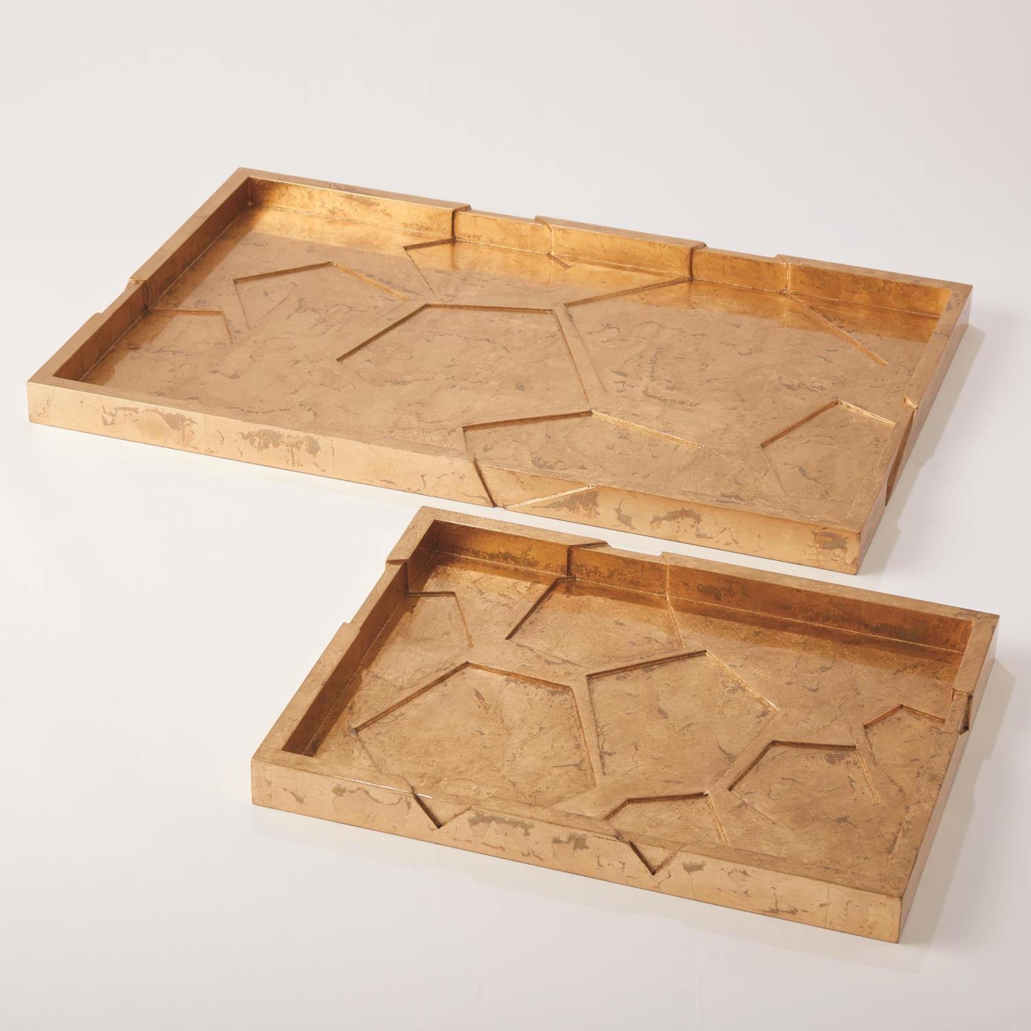 Made exclusively for Studio A Home this high quality Vietnamese lacquer is made in the traditional, multi-layered process which requires seven layers and several weeks to achieved a perfect finish. Add the design influence of Aviva Stanoff`s Cosmo geometry and one can clearly appreciate the hand work of each piece. Also available in Champagne Silver Leaf.
