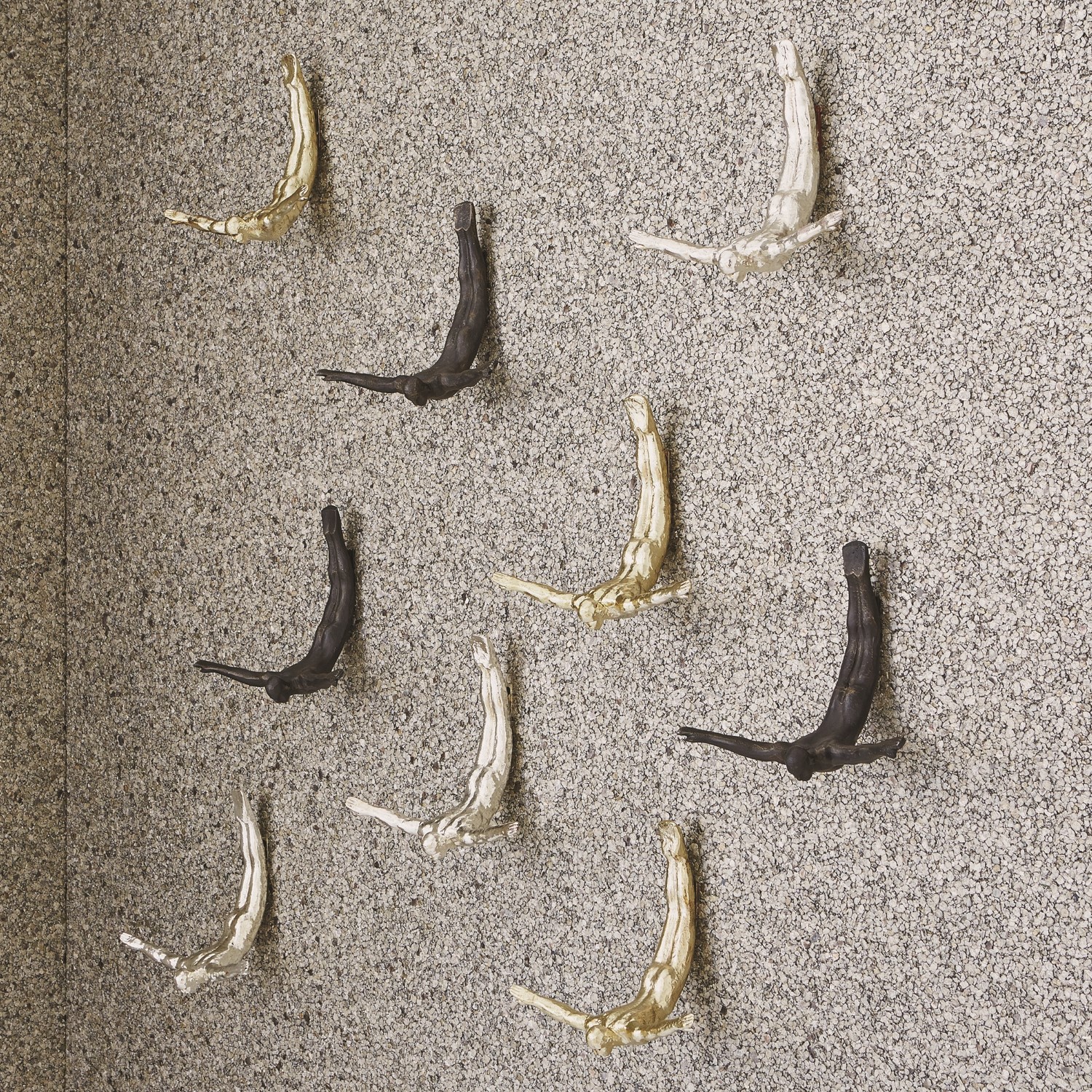 鐵製雕塑《 Wall Diver 》優雅捕捉了人體之力量與姿態之美,彷彿輕盈無重、滿懷信念地朝目標飛翔。可單一懸掛作為珠寶或賓客毛巾的創意掛鉤,也可多件排列,覆滿整面牆,營造出震撼的視覺波濤。無論置於何處,這位空中潛者皆為空間注入動感與張力,彷彿隨時準備一躍而下,完美演繹10分的藝術姿態。