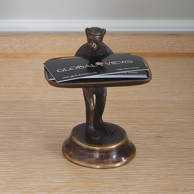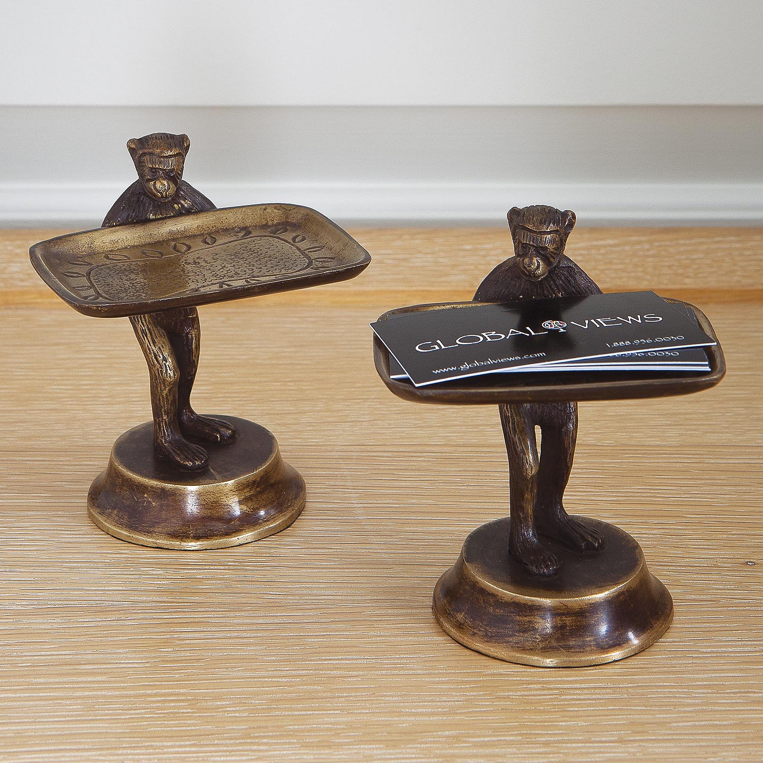 "At your service", our Monkey with Tray seems to say. The antiqued brass piece is a whimsical little piece that holds your smallest trinkets or business cards.