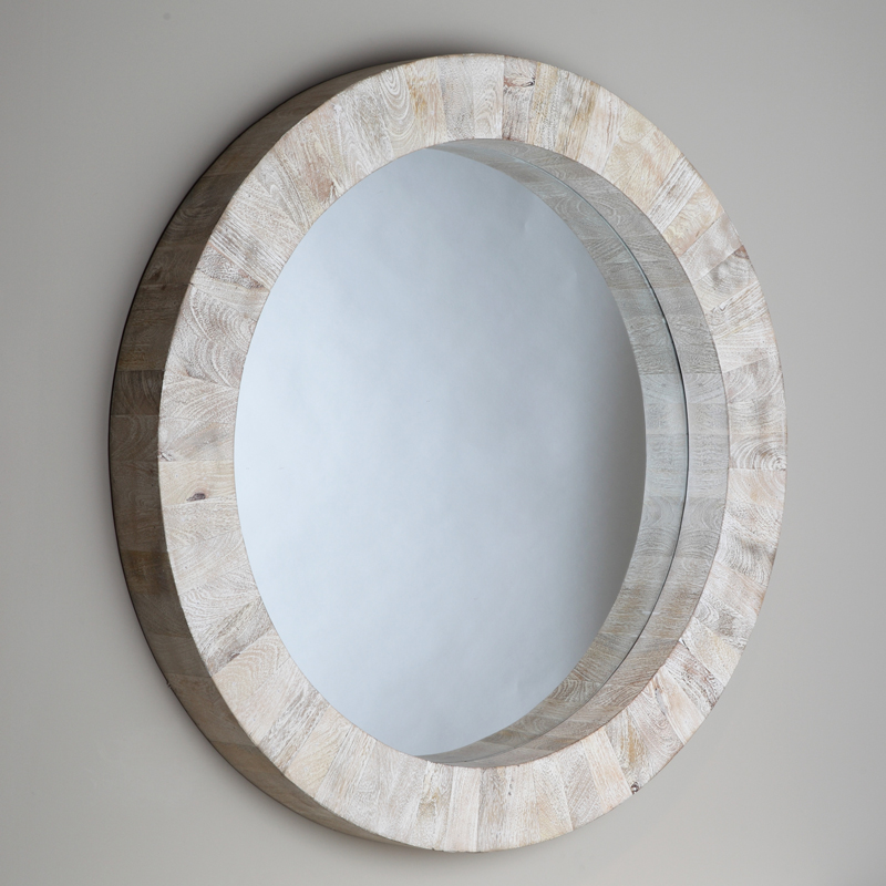 Inspired by the soft sandy hues of driftwood, the surface pattern of this collection is achieved by building each piece out of individual, precision-cut pieces of mango wood. Although each is a tour de force of carpentry, the effect is effortless and casual. To achieve the distinctive sun-bleached look, the pieces are first lightened and then given a subtle creamy wash.