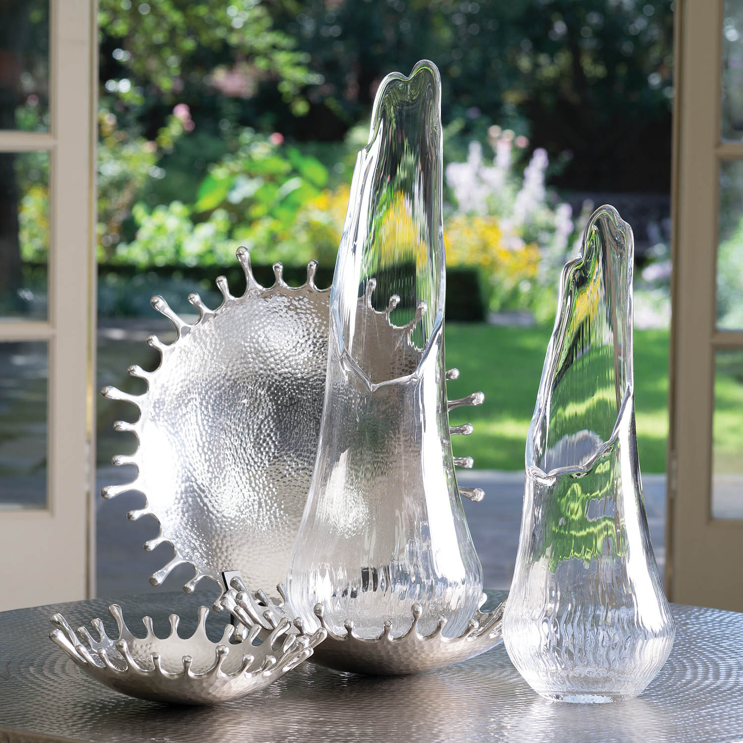 Splashes of water caught in suspended animation, our collection of high-quality cast aluminum bowls are functional and visually striking. Mounting fixture attached to back of bowls. Not suitable for tabletop use.