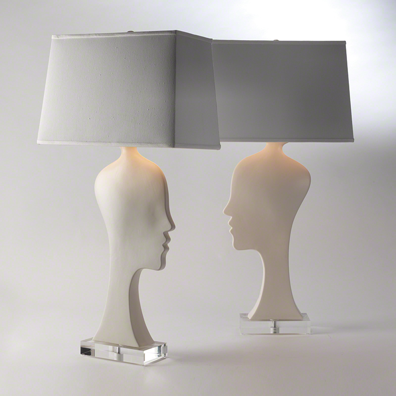 A classic human profile is transformed into a table lamp when cast from fine Portuguese ceramic. The lamp is functional both right or left facing.