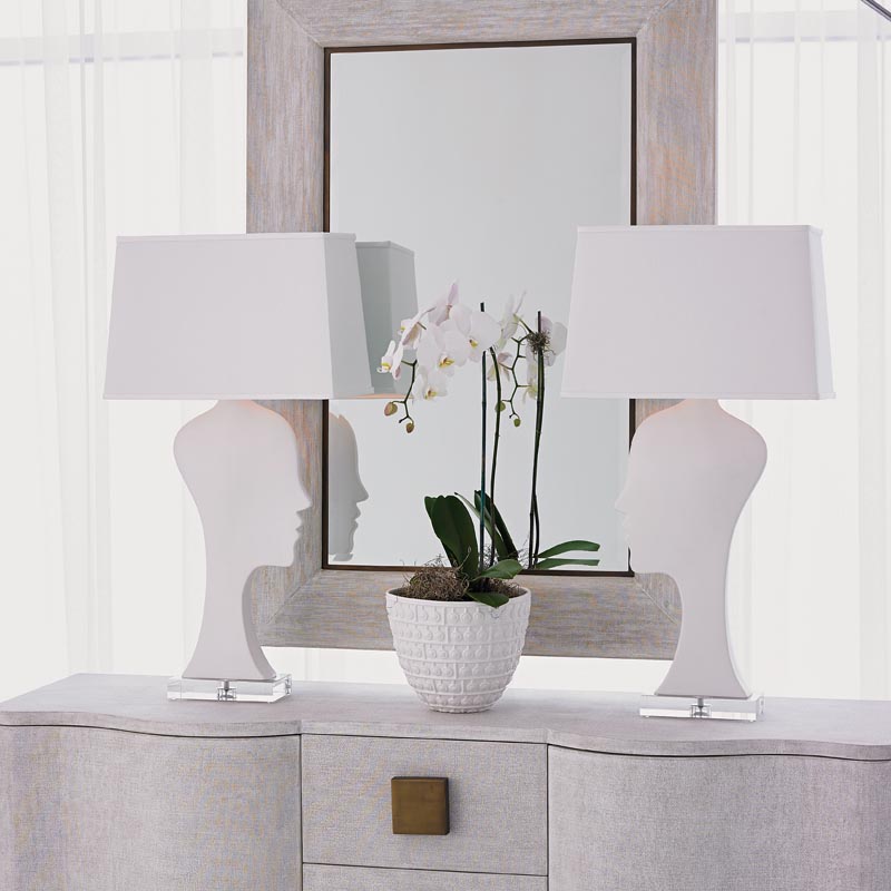 經典的人類側臉輪廓,經由精緻的葡萄牙陶瓷鑄造,幻化為一盞別具風韻的檯燈。無論向左或向右擺放,皆能展現其實用之美與藝術之姿。