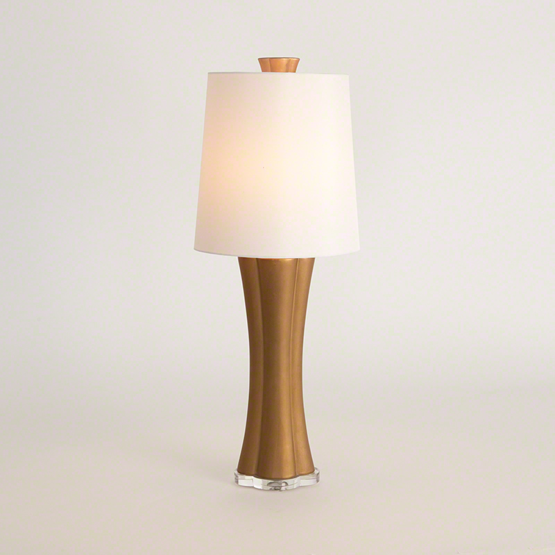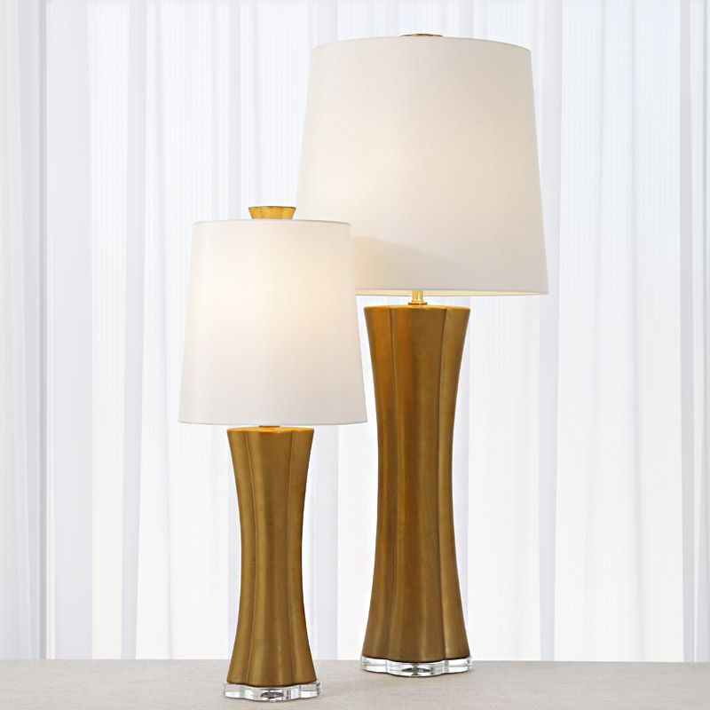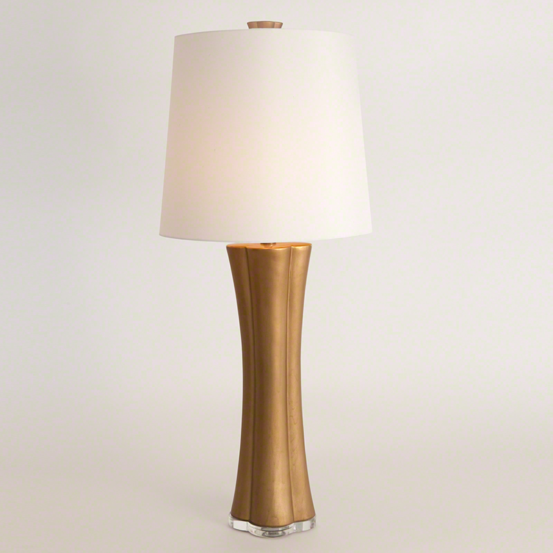 Renditions on a theme. The Quatrefoil Lamp Collection consists of two basic shapes in four sizes. Lamp bases are ceramic with an antique gold glaze, solid crystal quatrefoil bases. Cord exits from the center to allow for flexible positioning.