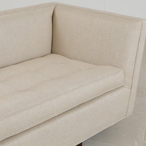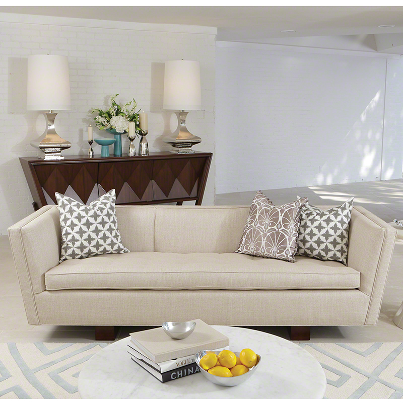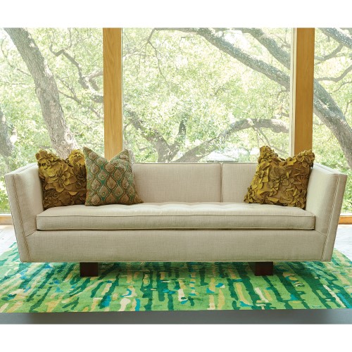 Constructed from laminated kiln dried hardwoods, the Gent Sofa-Windsor Woven has beautiful lines and solid construction. The joints are glued, stapled and reinforced with corner blocks for added strength and support. The spring are a drop in unit construction containing single and double cone construction and the cushions are 2.3lb foam with a thermal bonded fiber wrap. Our standard Comfort Crown cushion provides an inviting crowned look with initial softness and deep seating support. A 2.3 lb. density Ultracel HR foam core is laminated with a countered shape, medium density, foam insert, producing a permanent crown. Capped with super soft HR foam, it provides a plush feel and nice symmetrical shape. The completed core is encased in down proof ticking which provides a slow air release and smooth ride. This cushion provides consistent performance and comfort with a plush look and feel.