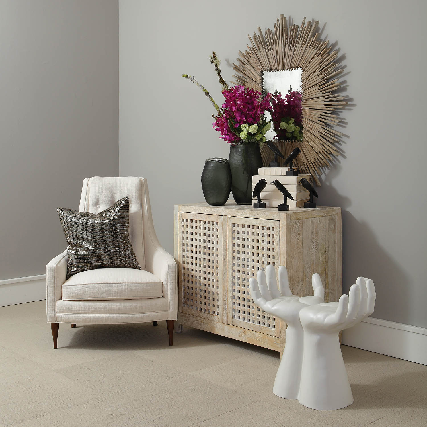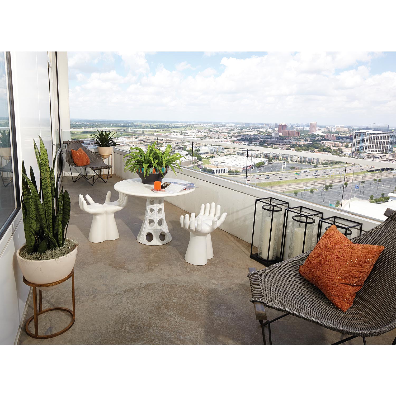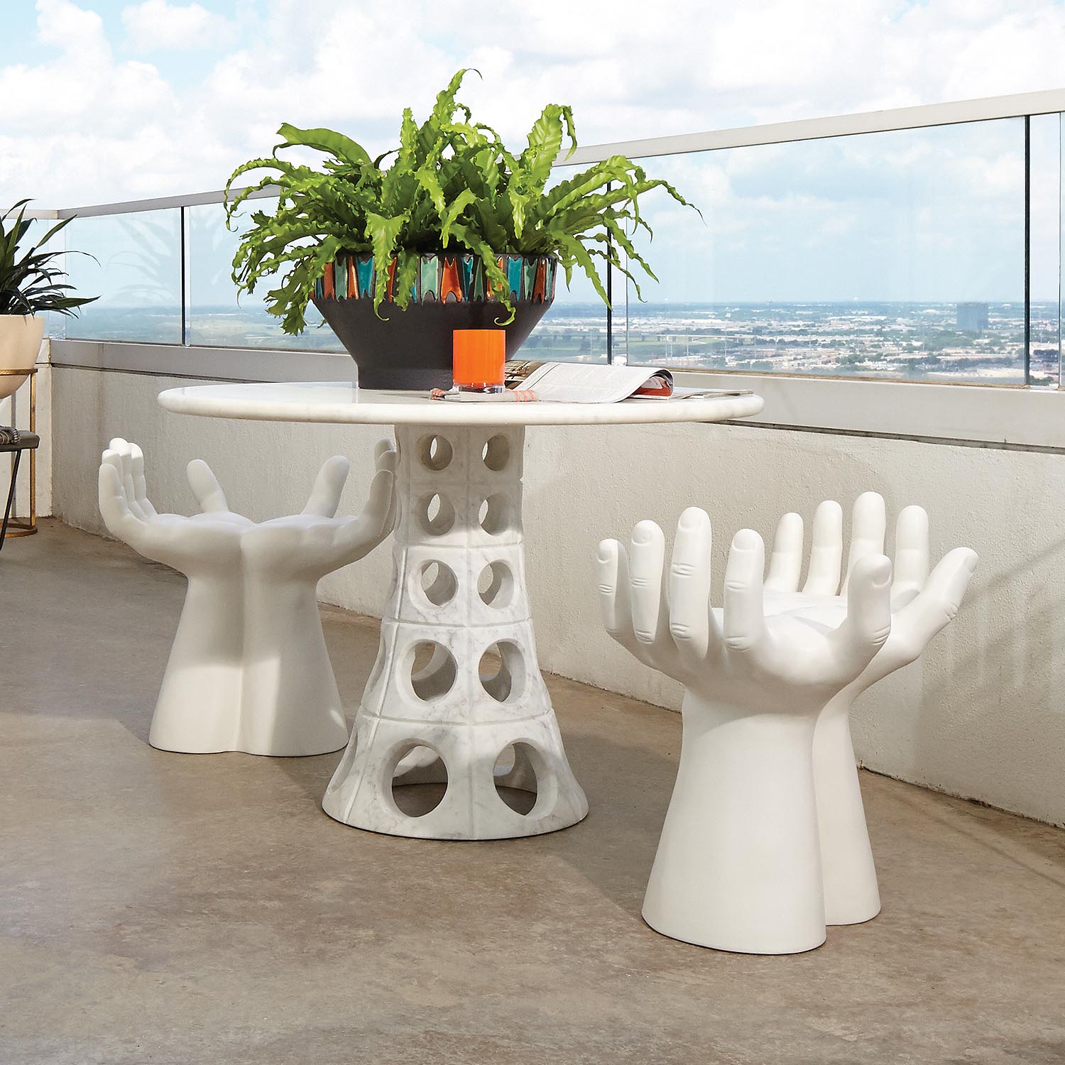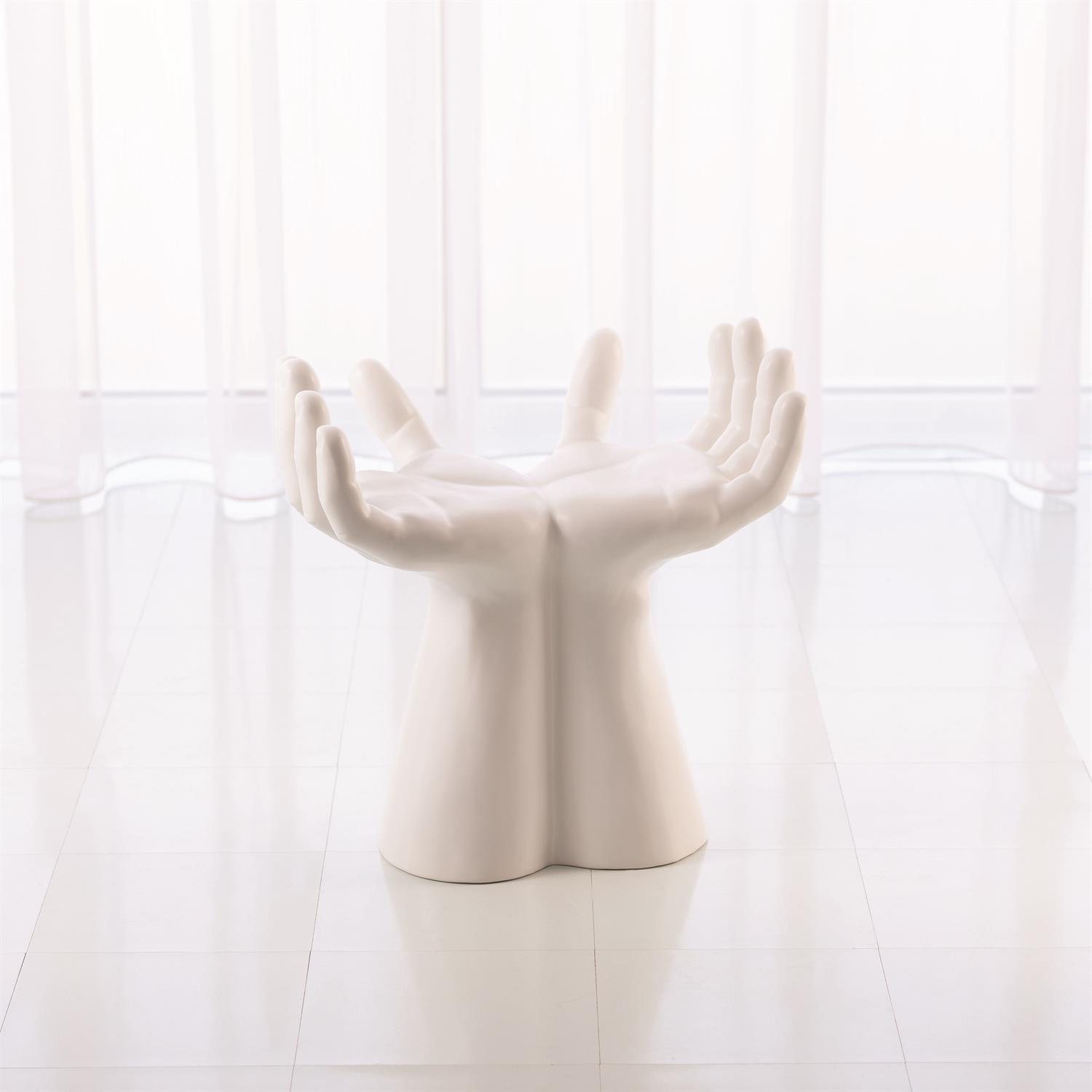 Studio A Home has you covered so you′re literally never in the wrong hands! This gracefully sculpted stool comfortably supports whomever sits in it. And it is great as a stand-alone piece of art as well! Made in Portugal of a special bisque that is fired at 1000 degrees to a matte white finish.