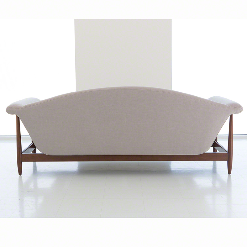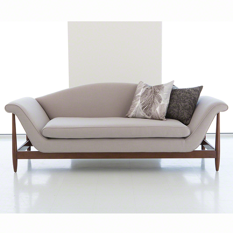 Studio A Home 瓦格納沙發是為向中世紀現代風格致敬。造型別緻的沙發主體,有著優雅且流暢的線條,曲線造型的扶手延伸至沙發兩側的山毛櫸木框架上,讓沙發看起來就像是漂浮在框架上方;弧形靠背以及獨立沙發坐墊更為這非比尋常的沙發外型增添了幾分層次。