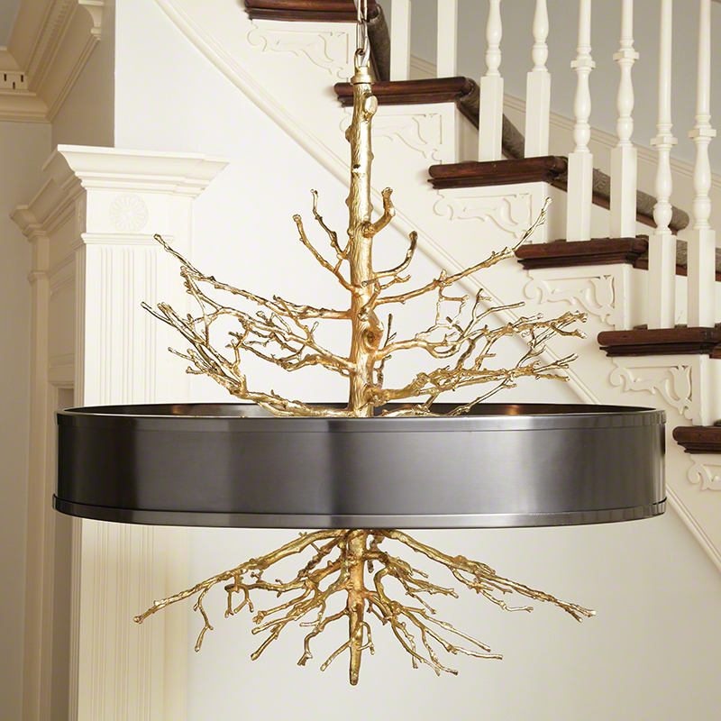 縱然自然的鬼斧神工無法複製,靈感卻能悄然綻放於設計之中。Global Views 的 Twig 枝幹吊燈巧妙取材於自然,以真實樹枝為原型鑄造,呈現手工製作的黃銅枝條之天然之美。此款雕塑般的藝術燈具提供深邃古銅與輕盈鎳銀兩種選擇,並配有霧面玻璃擴散罩,柔和光影中流露優雅氣息,為空間注入恬靜而雋永的自然之光。