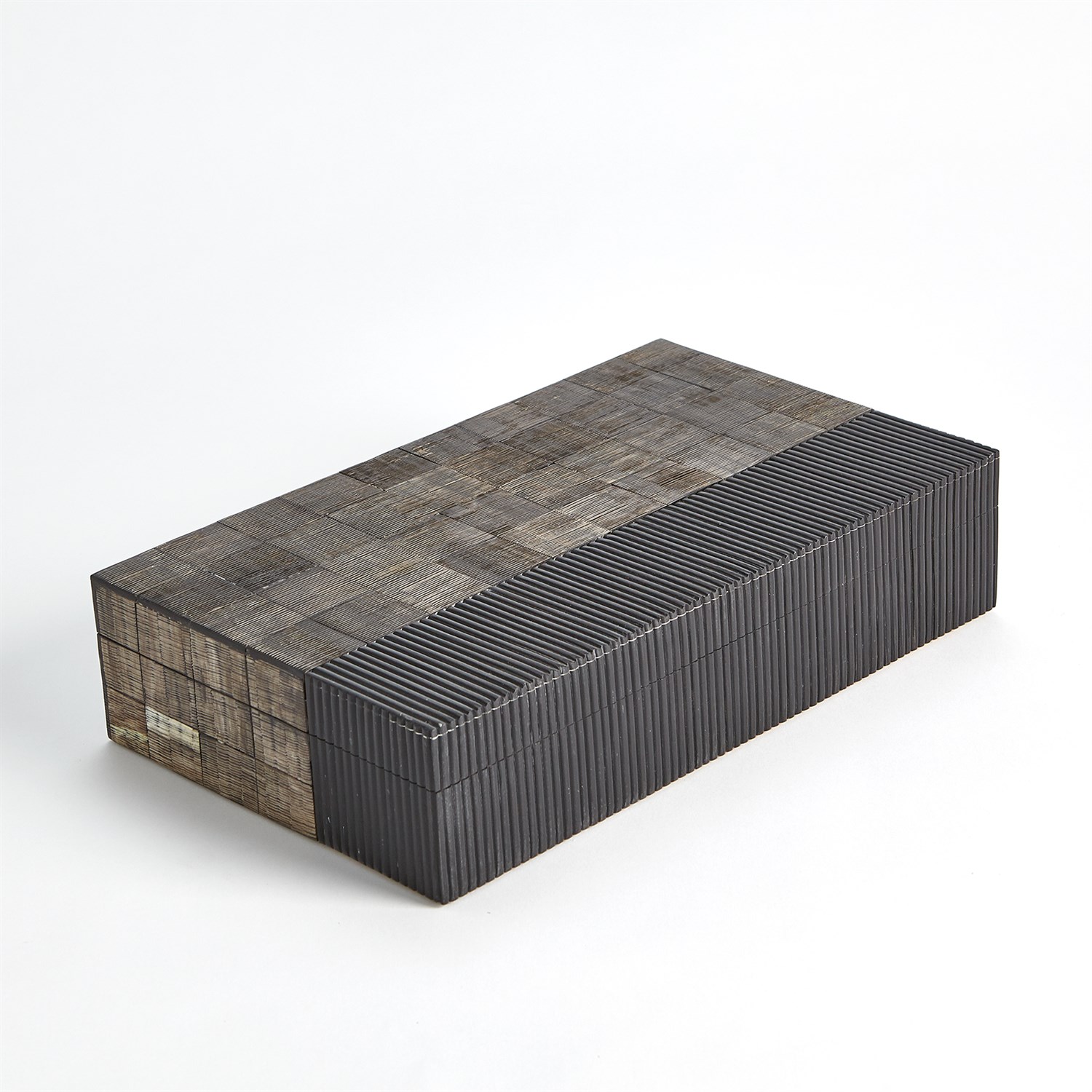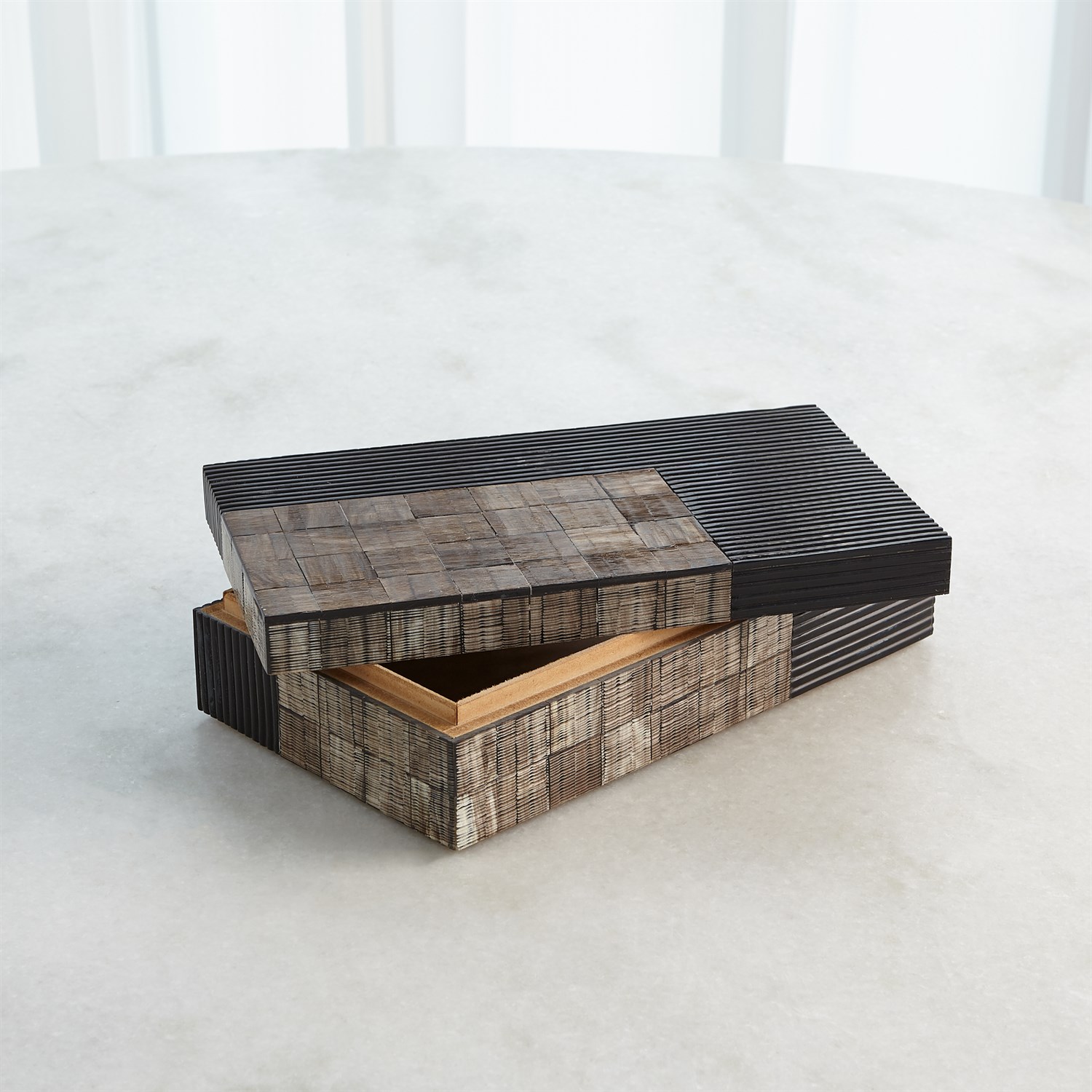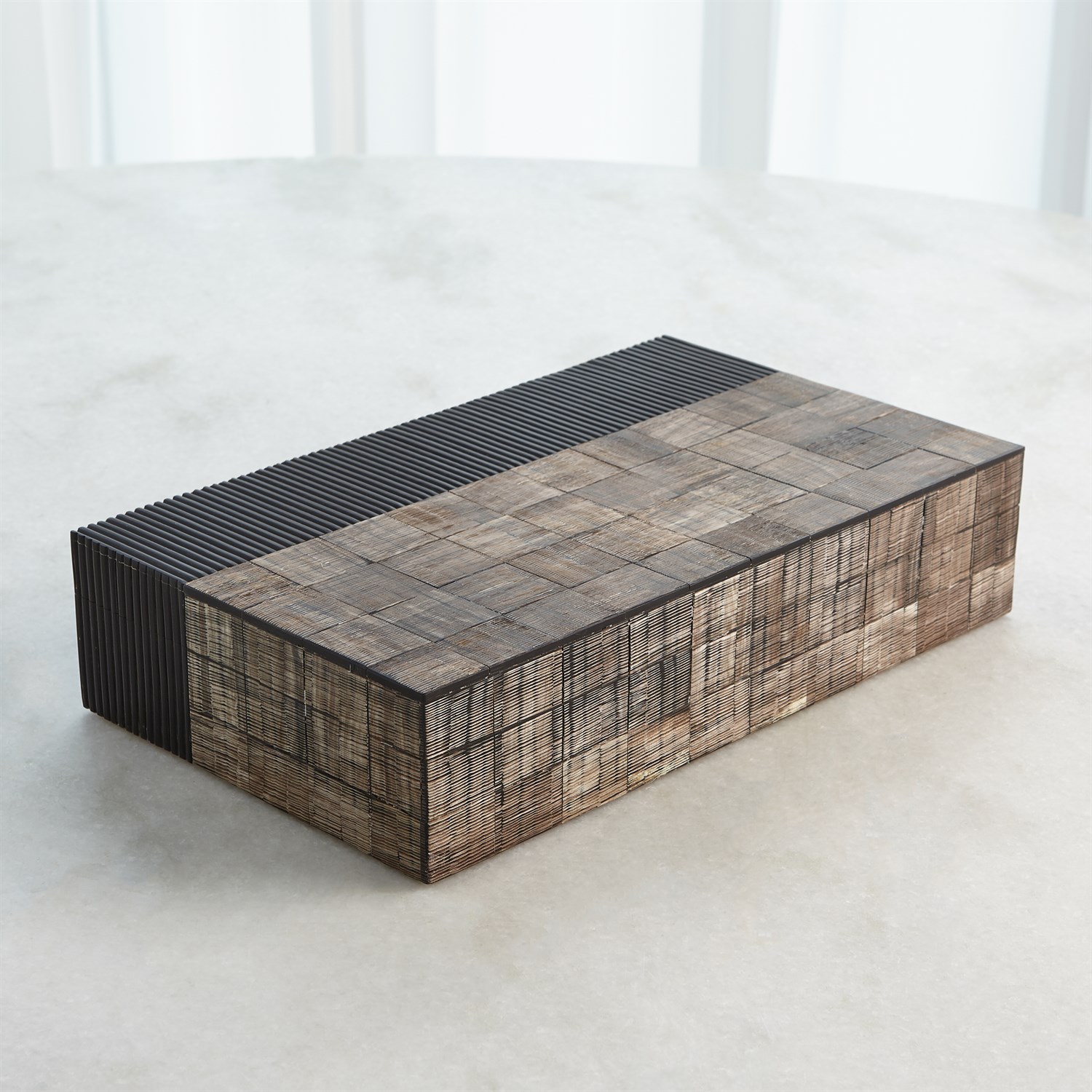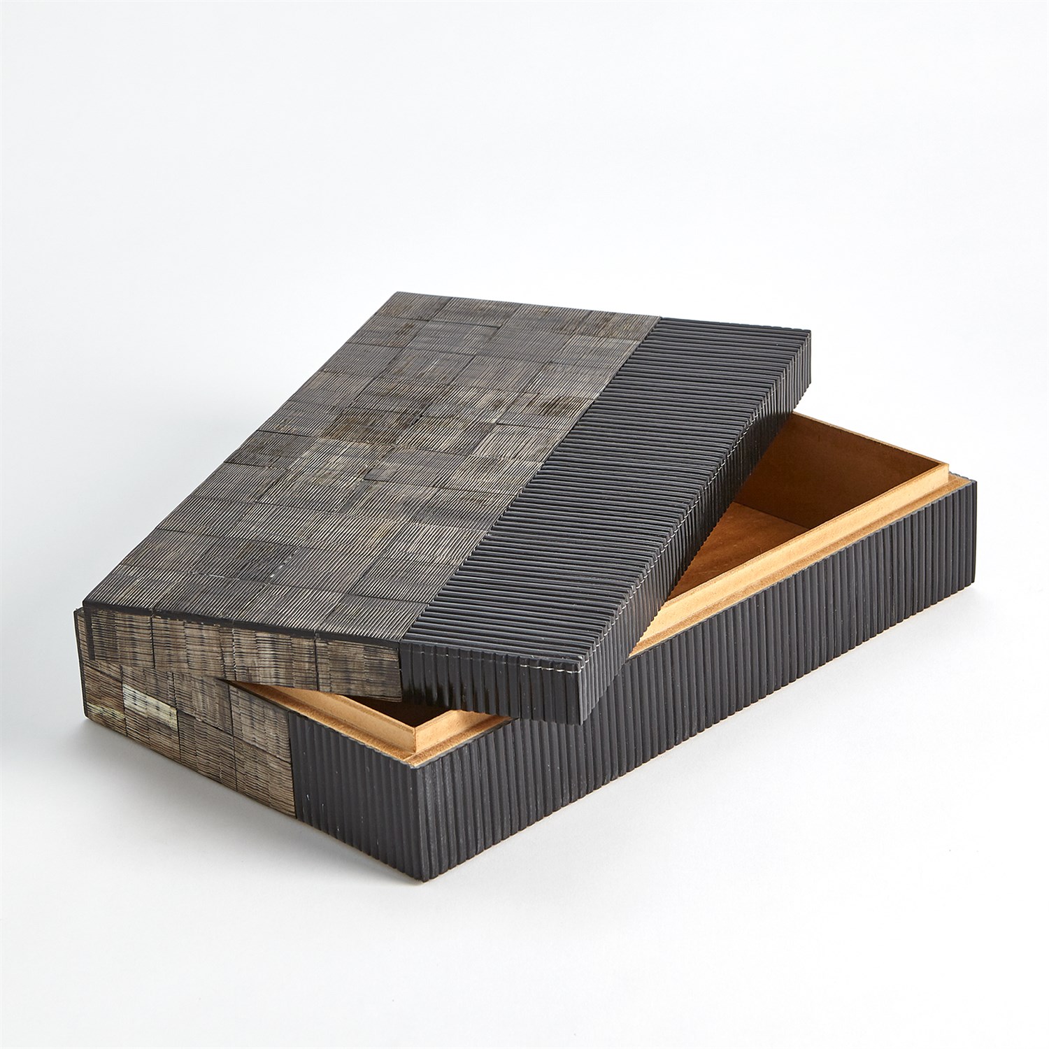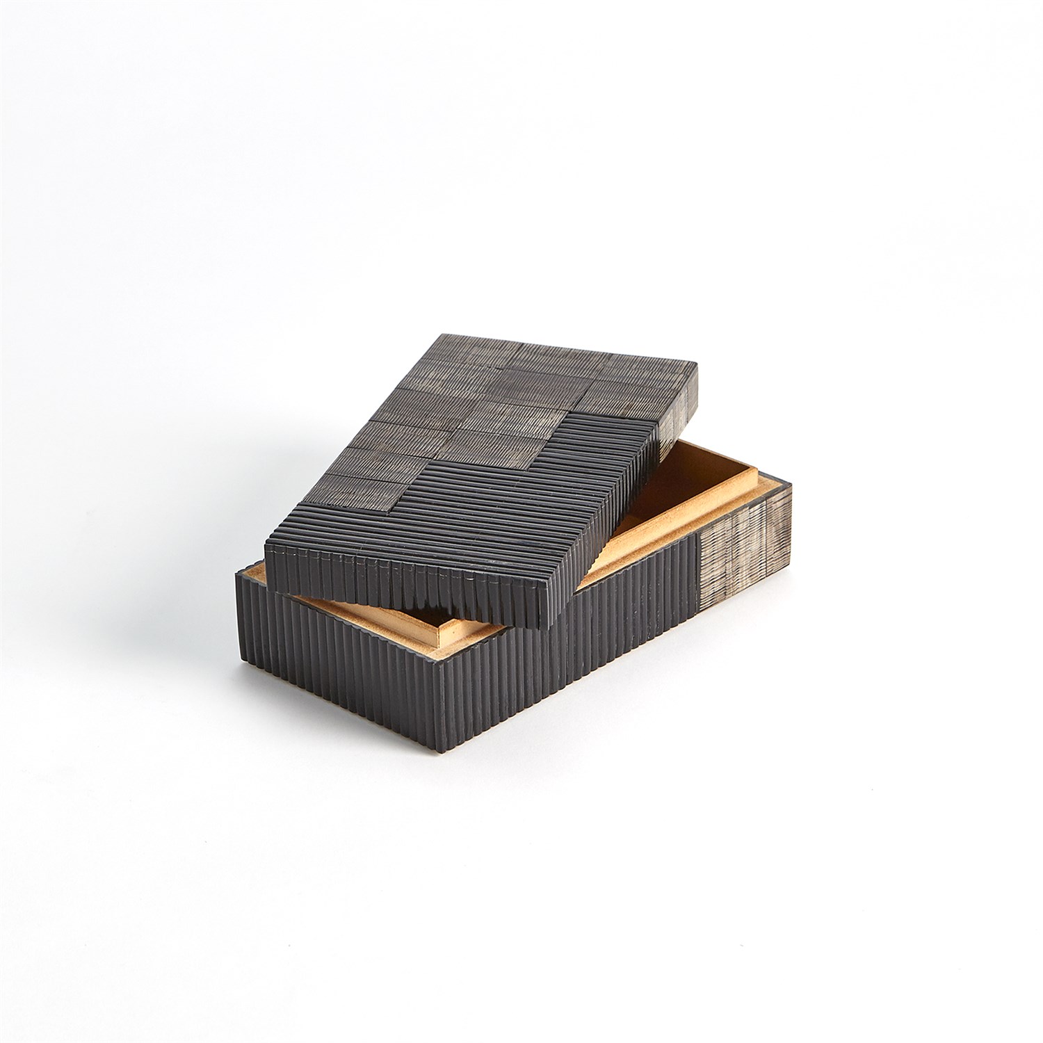 The Gilles Collection is handmade of ribbed horn and resin with a burnt stained finish.