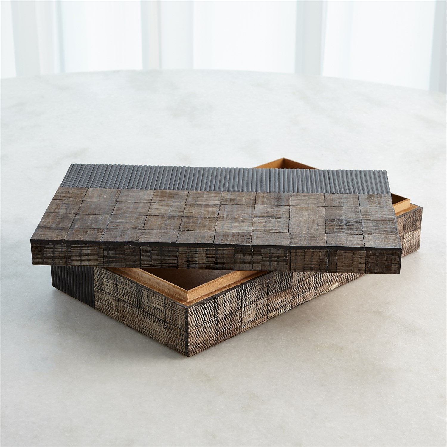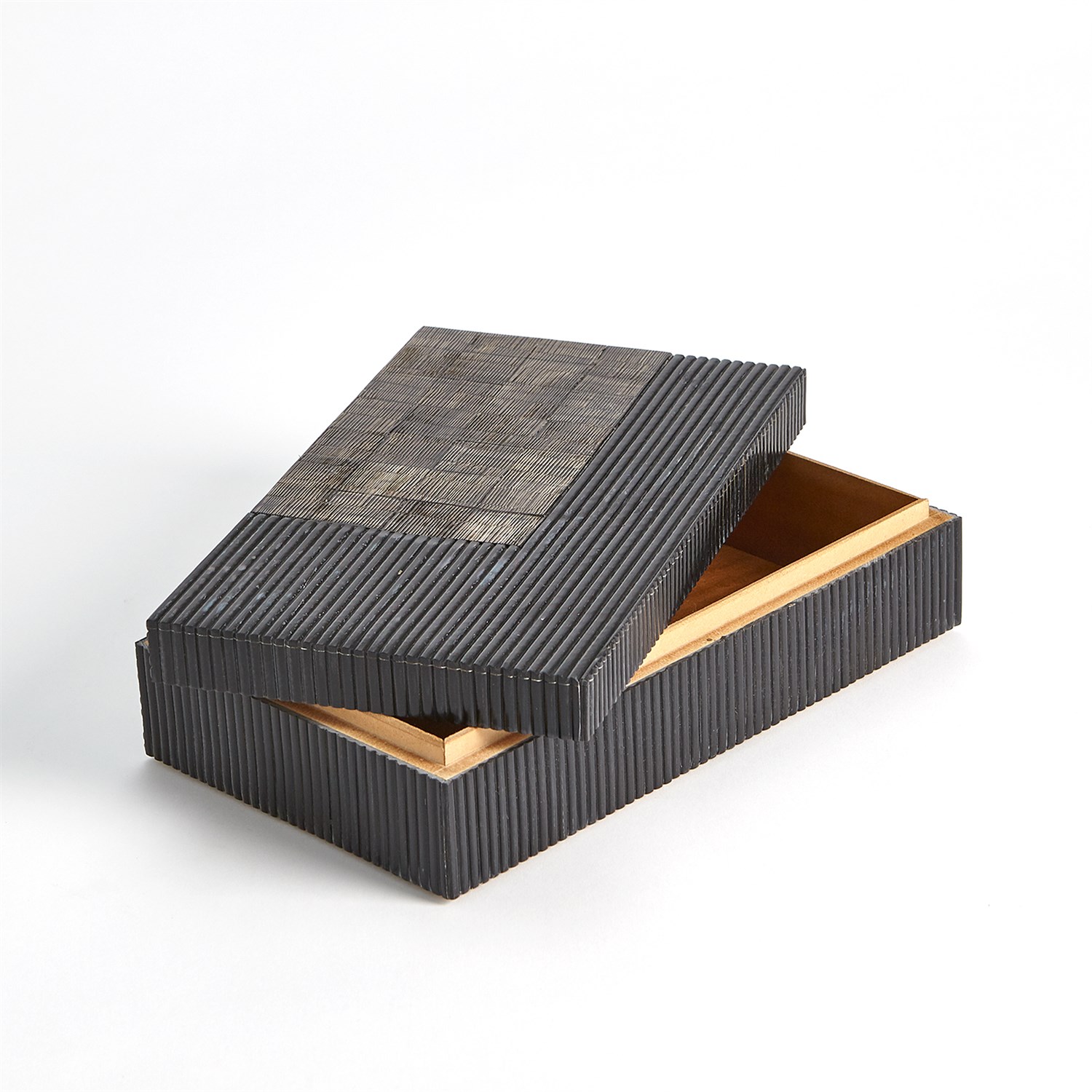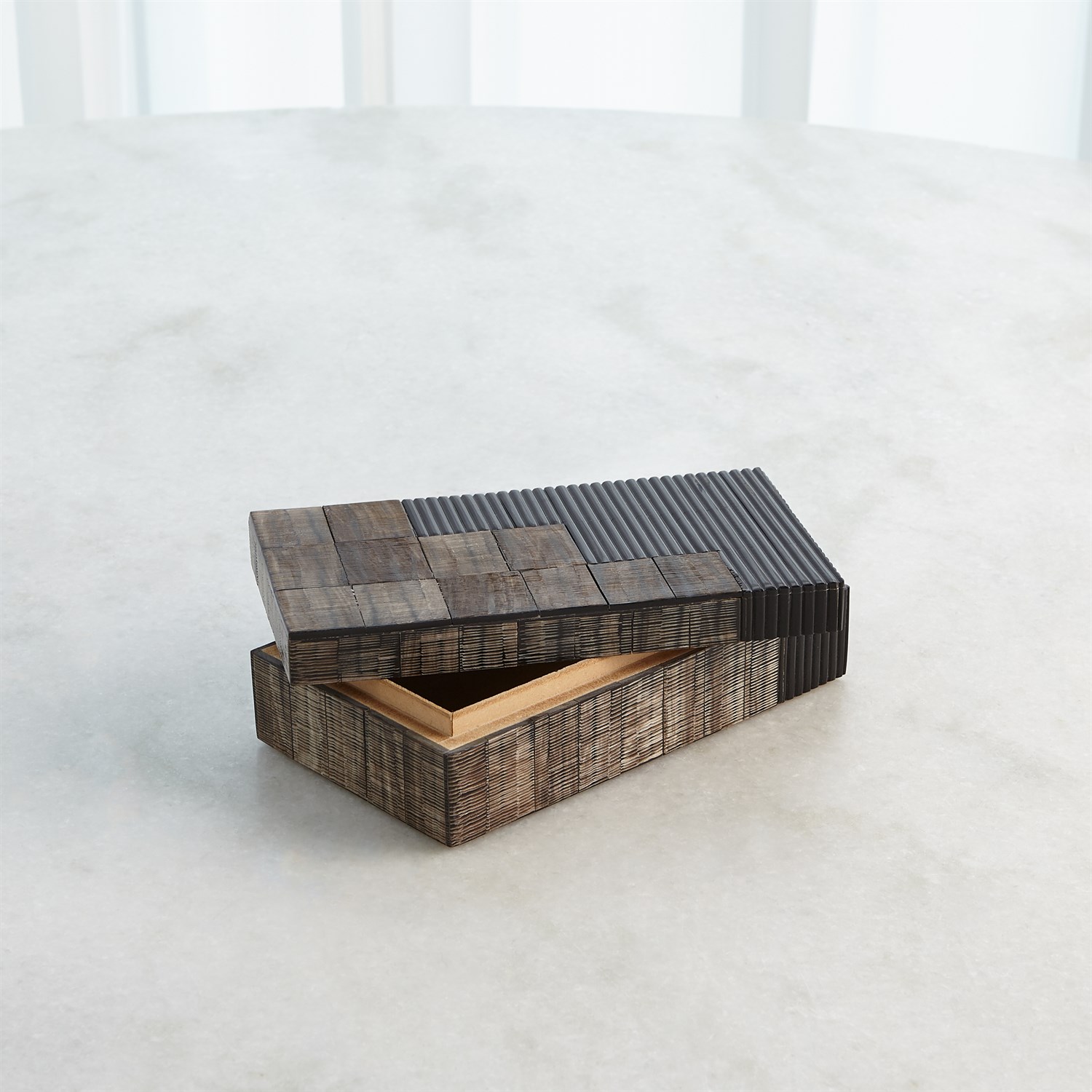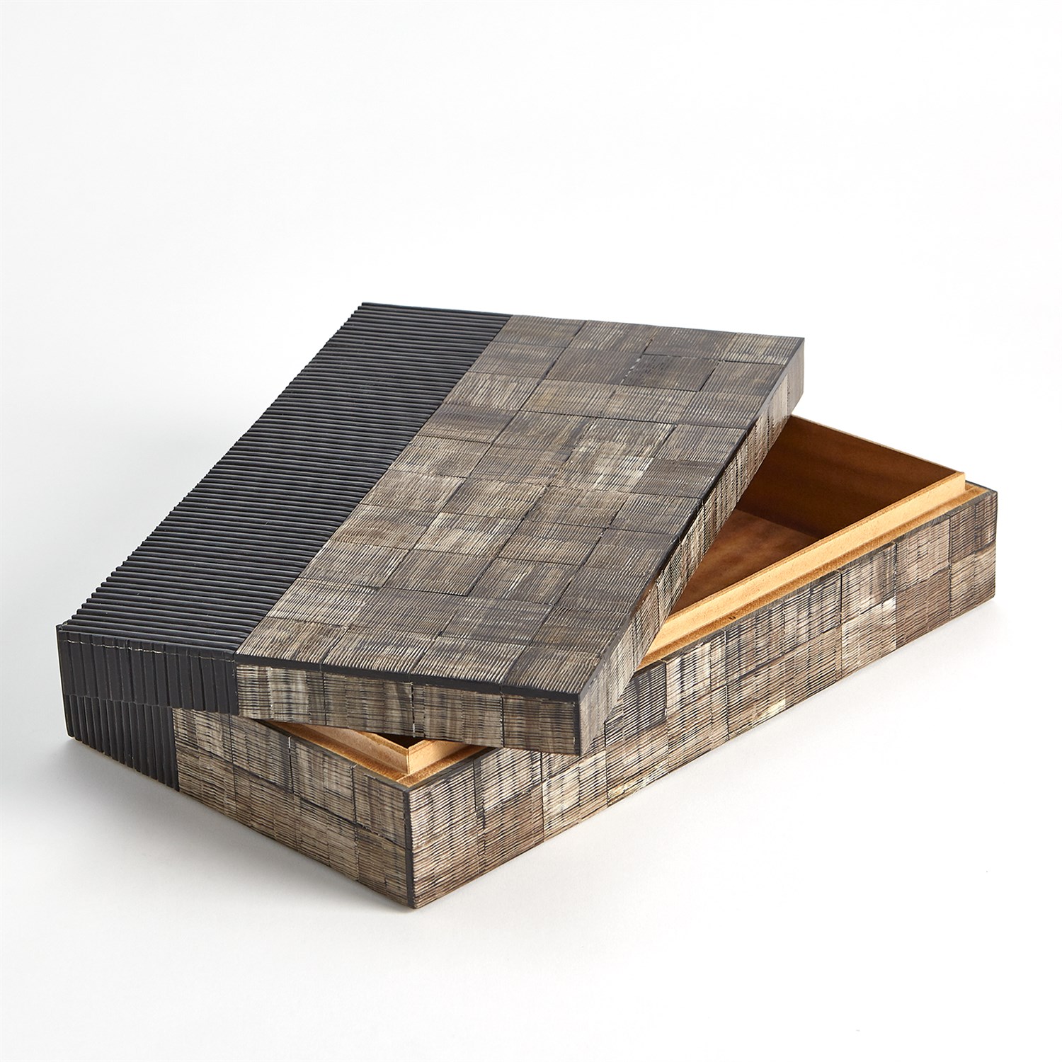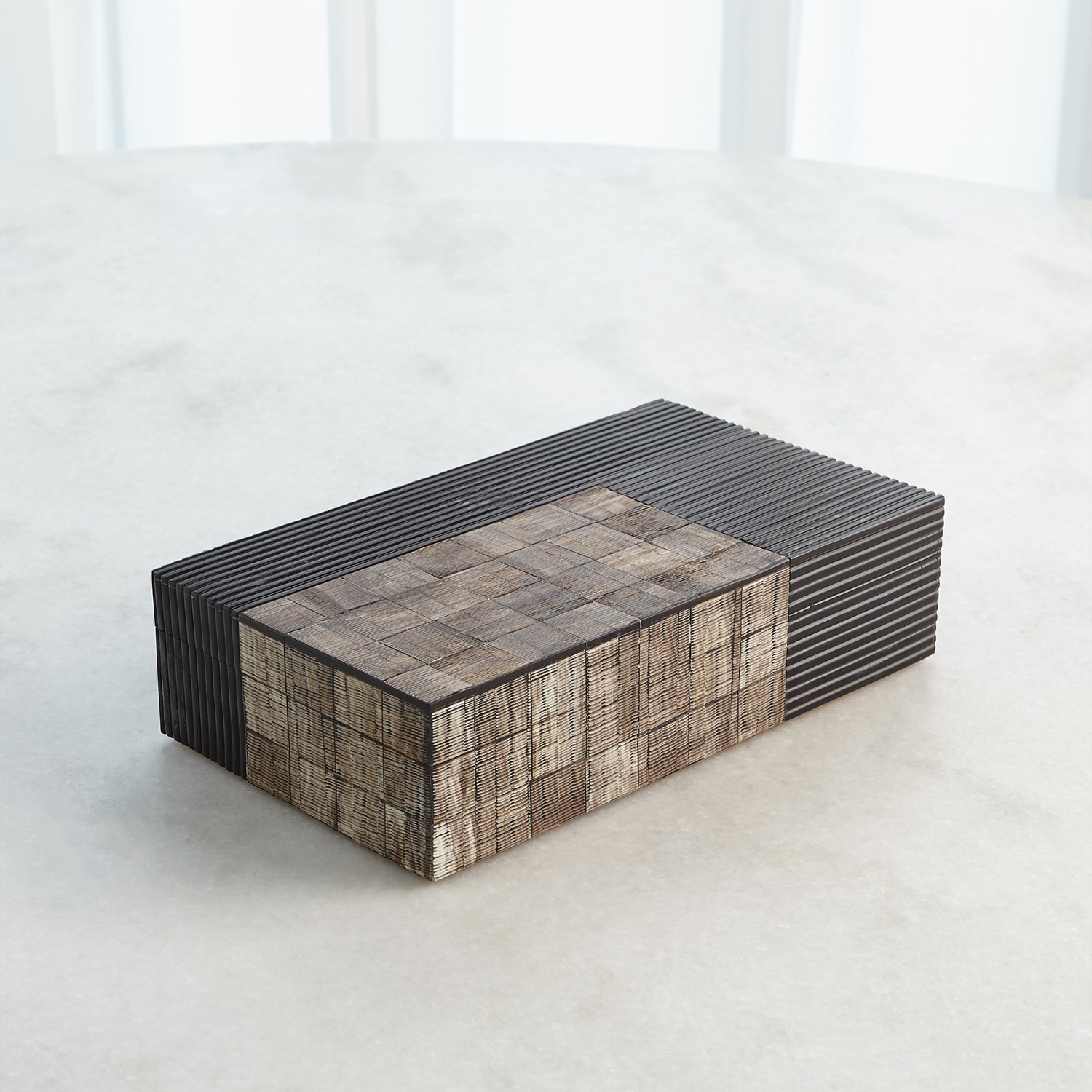 The Gilles Collection is handmade of ribbed horn and resin with a burnt stained finish.
