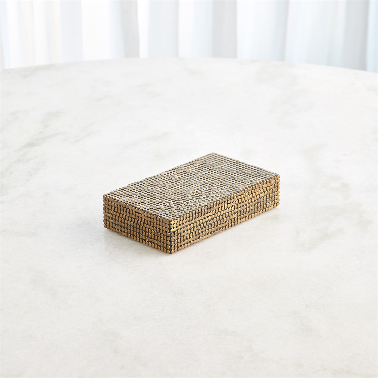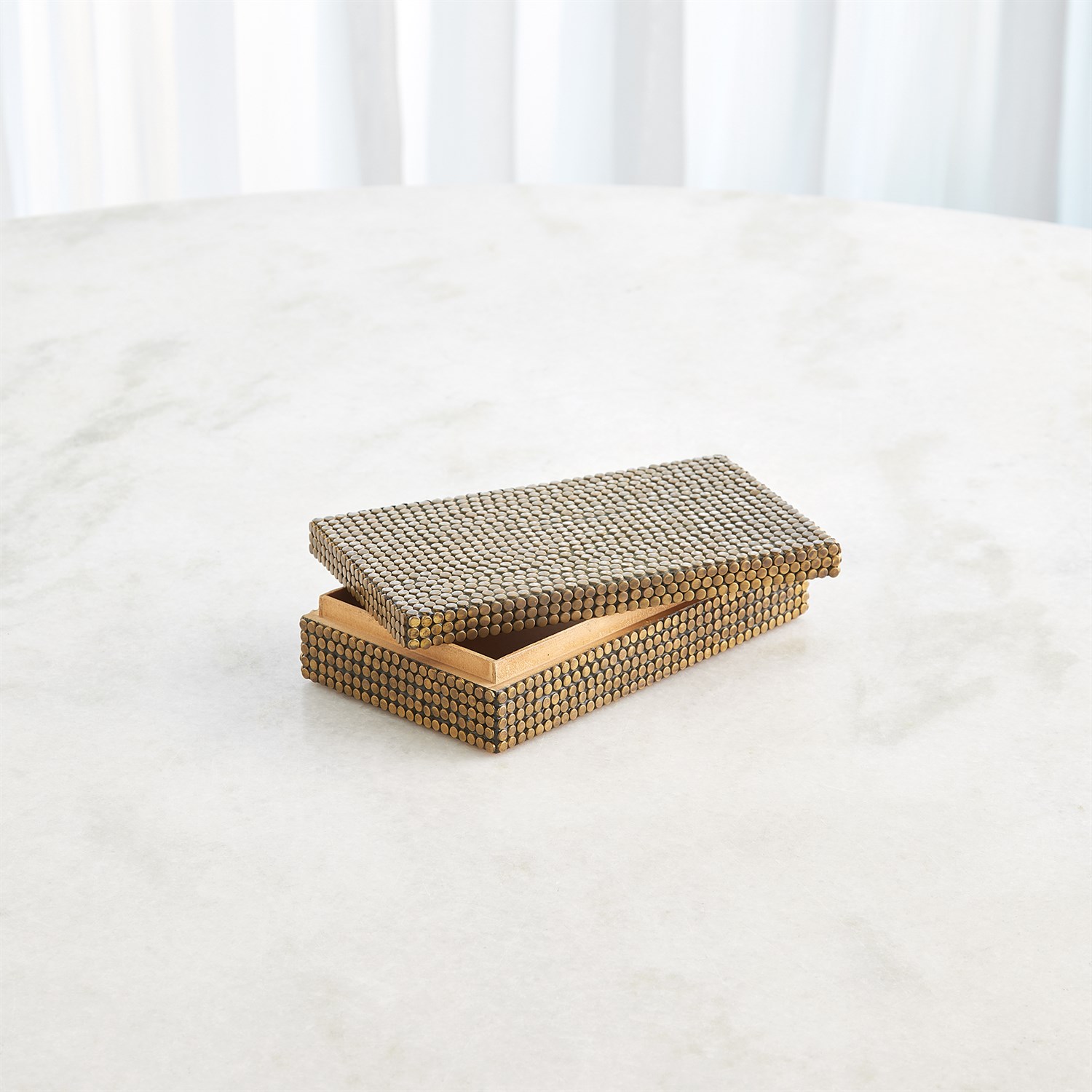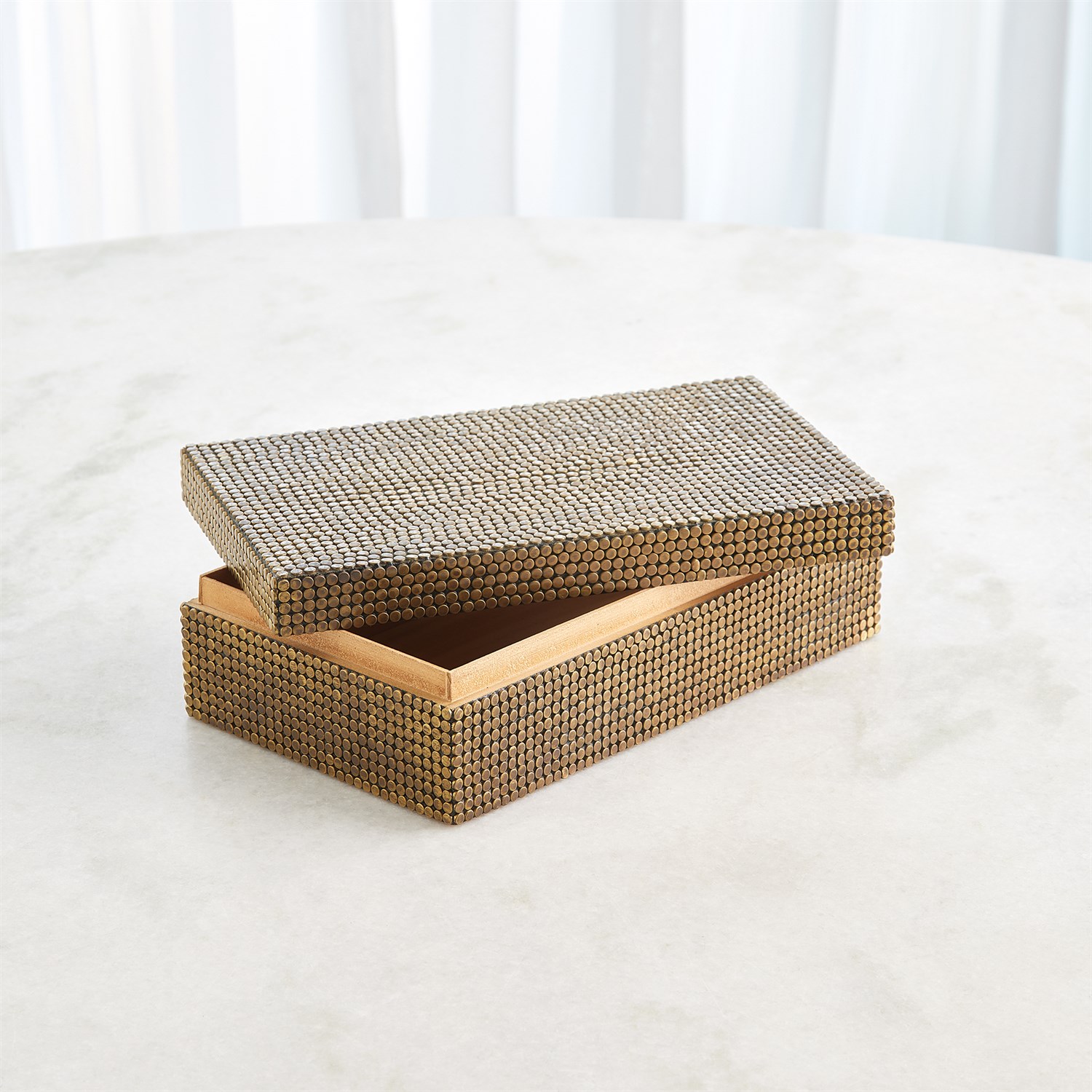 Crafted from brass and featuring individually hammered studs, the Lames Boxes and Trays reflect exceptional artisanal craftsmanship. Inspired by the “lame,” a solid metal sheet used in medieval plate armor, these pieces seamlessly blend rich history with contemporary flair.