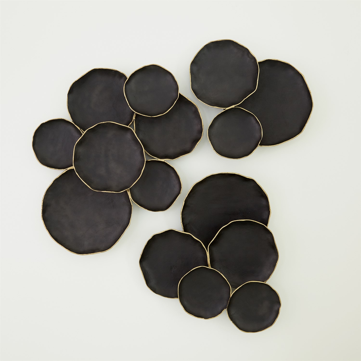 以黑色金邊牆掛為空間注入鮮明風格,無論單件展示或組合陳列,皆能成為視覺焦點。作品採用鑄鋁材質打造,邊緣以手工上色的仿古黃銅細節點綴,展現低調奢華的工藝美感。