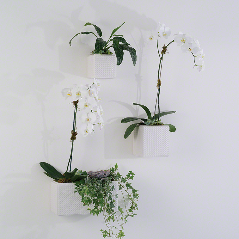 葡萄牙進口,猶如天鵝絨一般柔和的啞白色陶瓷,被壓印上獨特的漣漪圖案,輪廓變得更加鮮明。這些線型紋理的牆掛花瓶,不僅是出色的牆上花器,空置時更能營造出清爽沉靜的氛圍。可選多個不同尺寸的花瓶,分別排列置掛於牆面上。