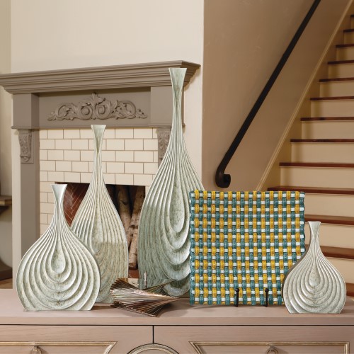 我們的碧綠色花紋陶瓷擺飾品,很適合用來為家裡增添一些視覺層次,帶點童趣感,能為空間加點「小巧思」的可愛單品。這些花瓶採用灌漿模具製成,表面覆蓋變色釉料,釉色彷彿在每一層綻放的波紋中自然匯聚。層層紋理堆疊出的視覺效果,營造出豐富的立體感,同時仍保有簡約的美感。