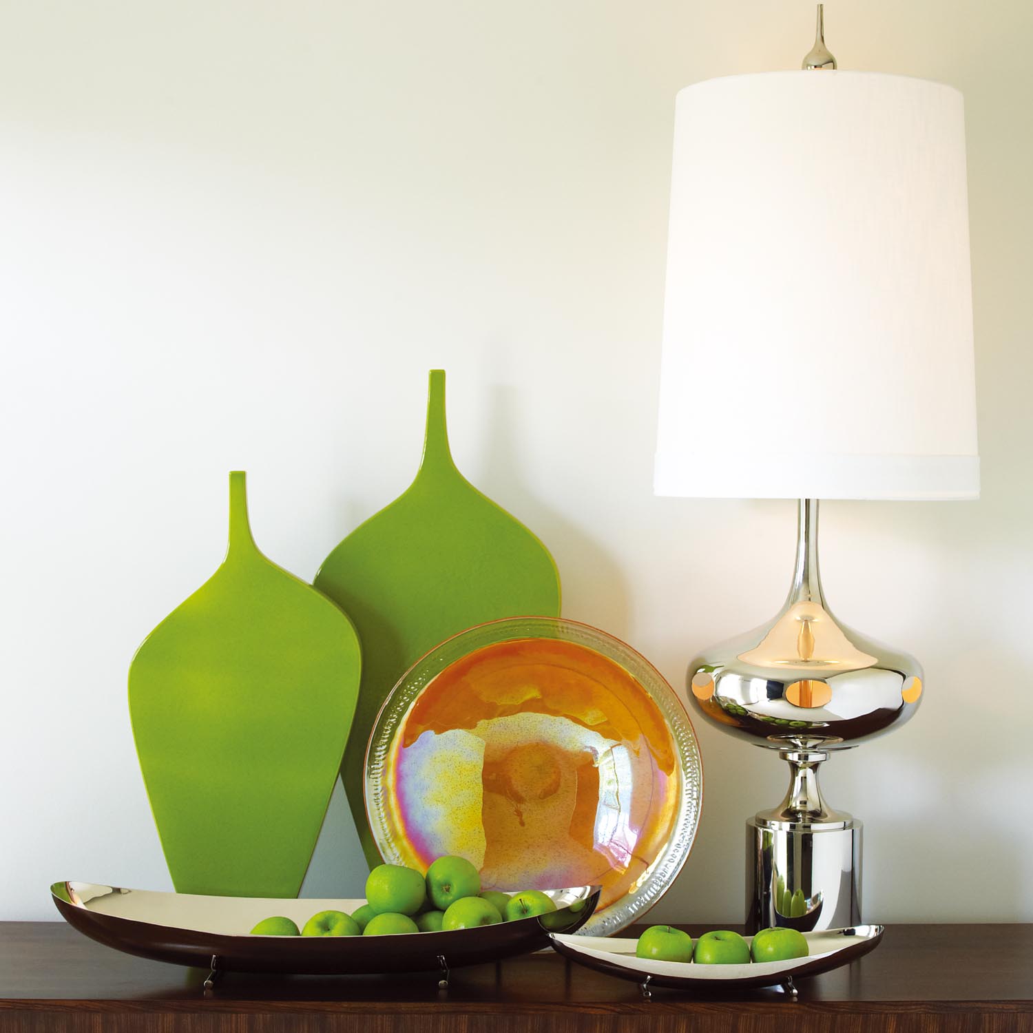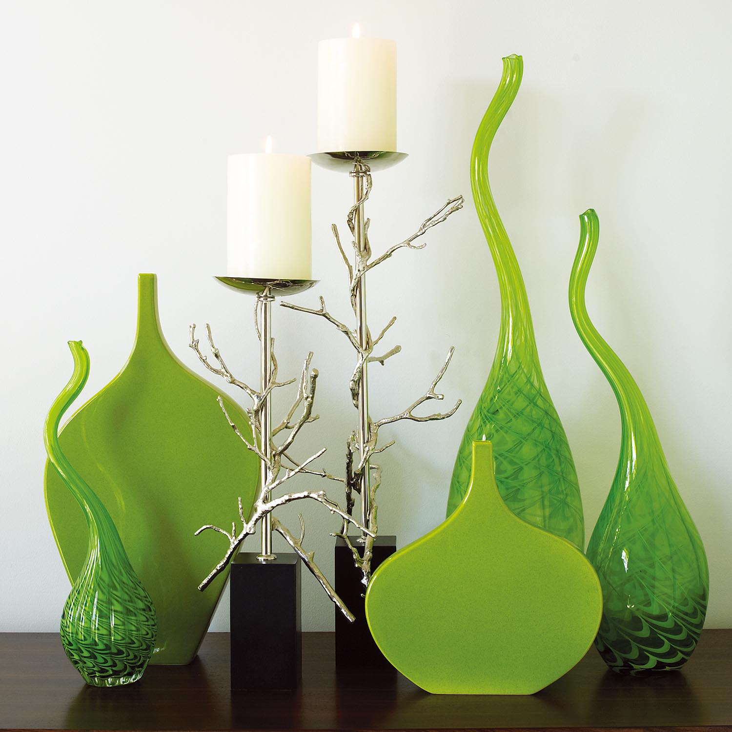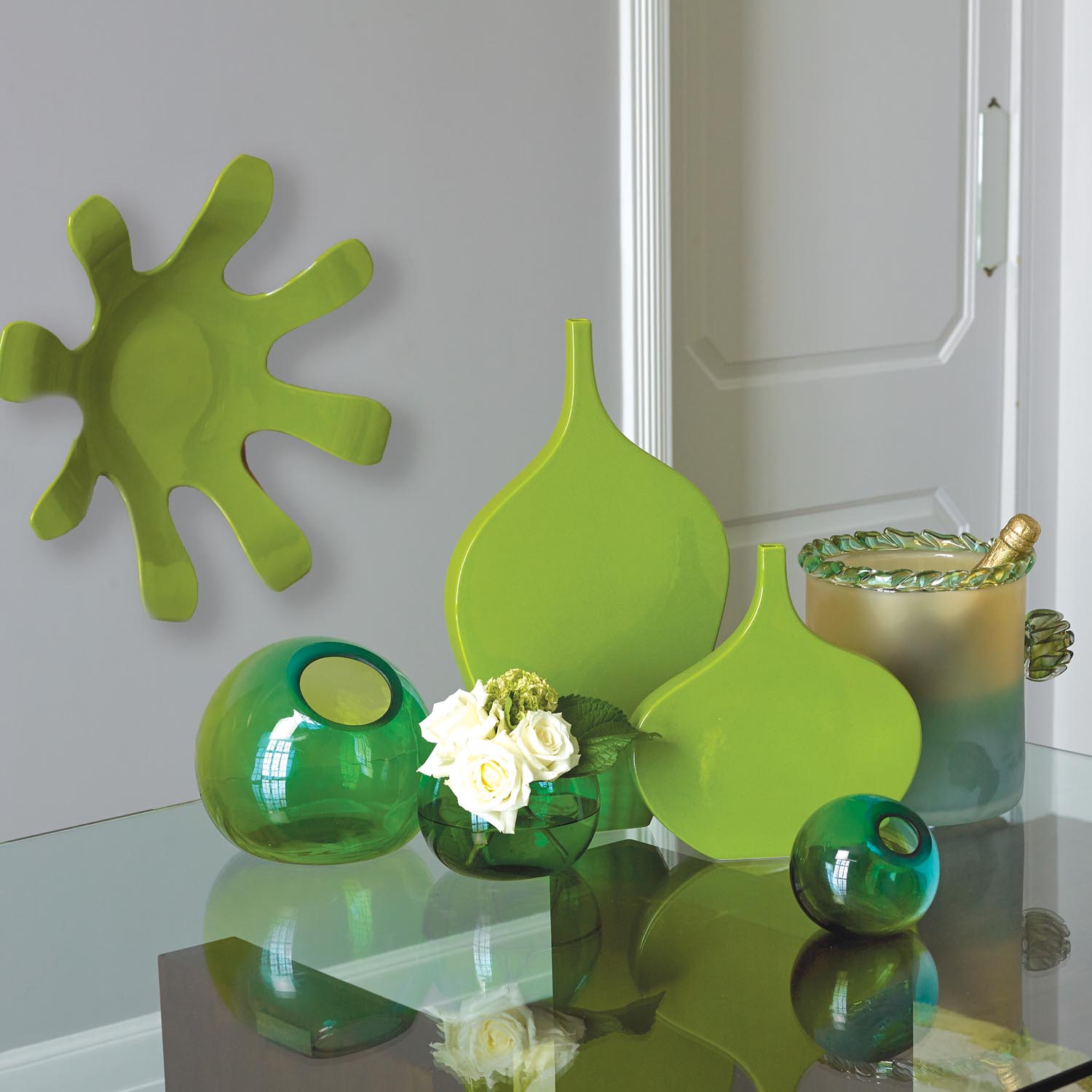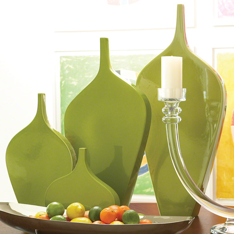 The narrow neck of our Guitar Vase leads down to strong shoulder-like curves that mimic the shape of a classical guitar. The unusual shape of the bold green ceramic vase is playful way to layer color to your space.