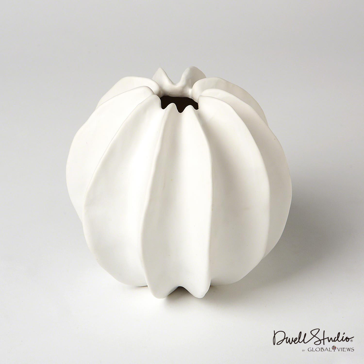 This chic vase is an easy way to layer the home with texture. Ceramic construction with matte white finish.