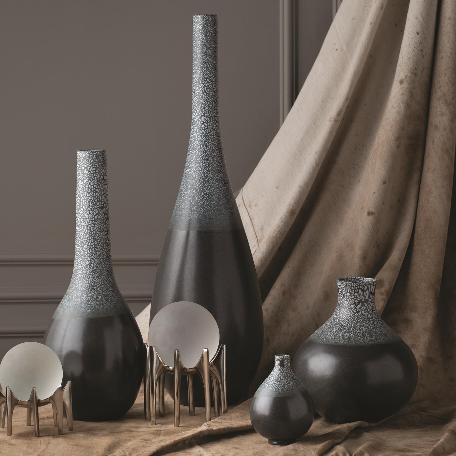 葡萄牙匠人運用精湛的釉面工藝,讓陶瓷表面形成蛋殼的奇特質感。灰藍色釉面沉靜厚重,藍色碎裂花紋增添動態對比反差,最終成為難能一見的陶瓷精品。