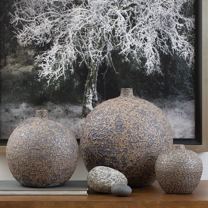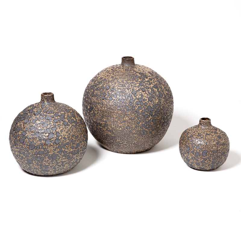After years of searching, Studio A has found a ceramics studio versed in the long-lost art of `volcanic` or `lava` glazes. Not available in the mass market since the 1960`s, these very special glazes are technically demanding and difficult to achieve, with each piece having surface variations unique to itself.