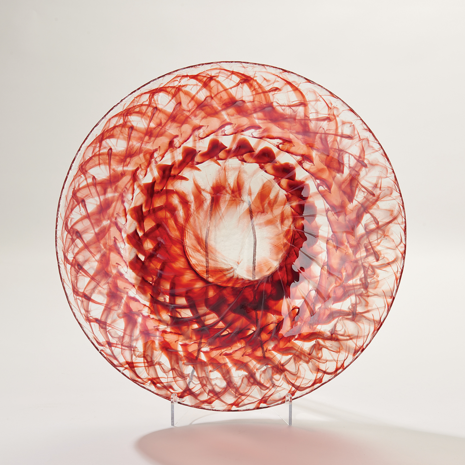 來自穆拉諾玻璃作品巧妙融合青瓷綠與牛血紅,營造出鮮明對比與獨特魅力,為空間注入藝術感與色彩亮點。※盤架皆為選購商品,盤類商品均無附贈盤架。