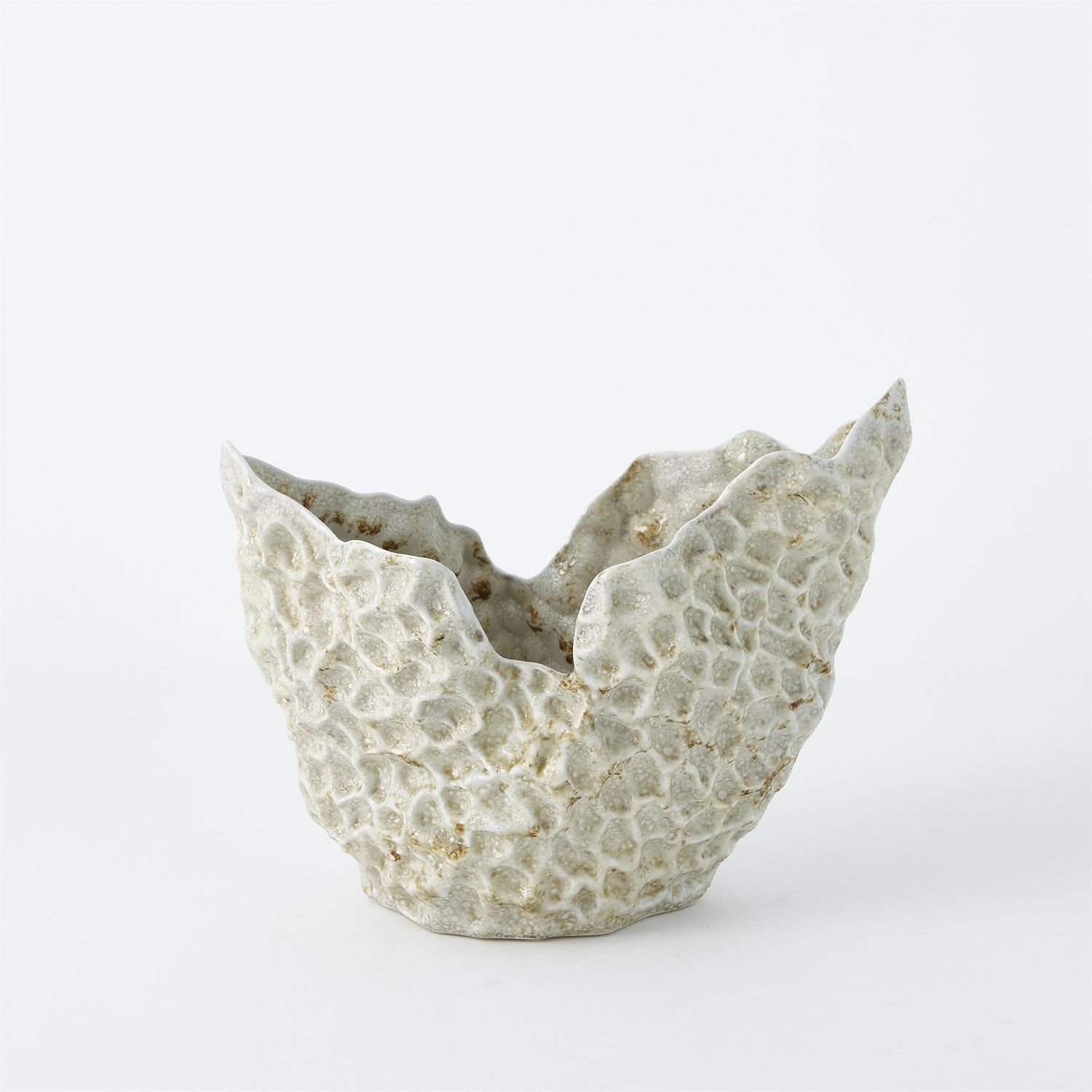 Hours and hours are spent by a ceramic artist to painstakingly form, pinch and shape the porcelain clay into these master forms which are not only beautiful and unusual, but have the structural integrity to maintain their shapes when fired. The coup de grace is the extreme variation in subtle color and opacity of the reactive glaze--a range from dusty browns and grays to clear golden citron. Not water tight.
