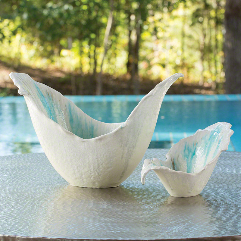Just like the phenomena from which it gets its name, dramatic seiche waves arise from a standing vessel. The fluid shapes are complemented by a subtle aqueous-colored reactive glaze on white ceramic. Each is a work of art.