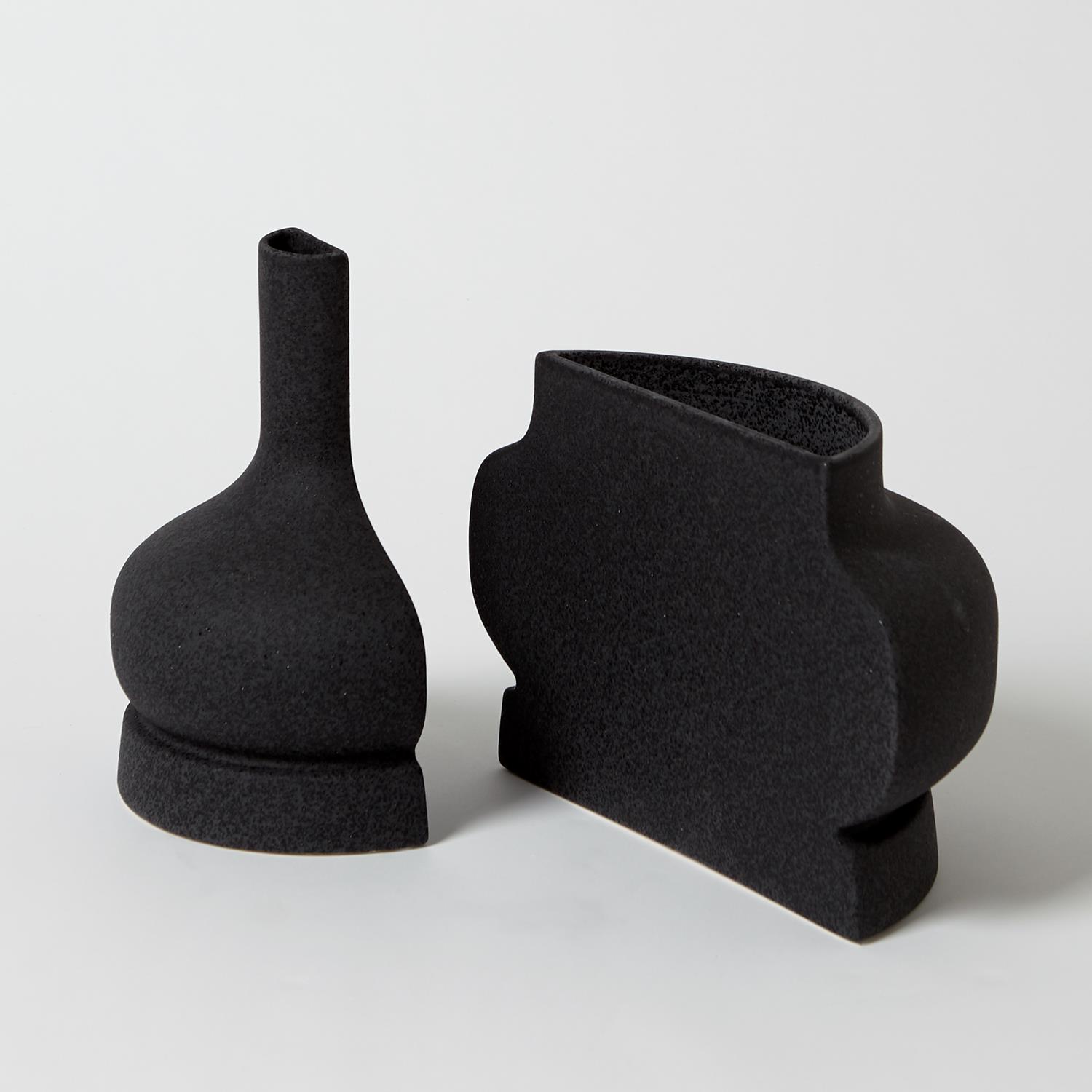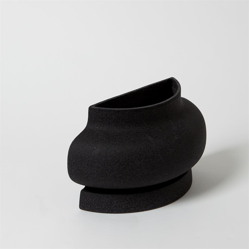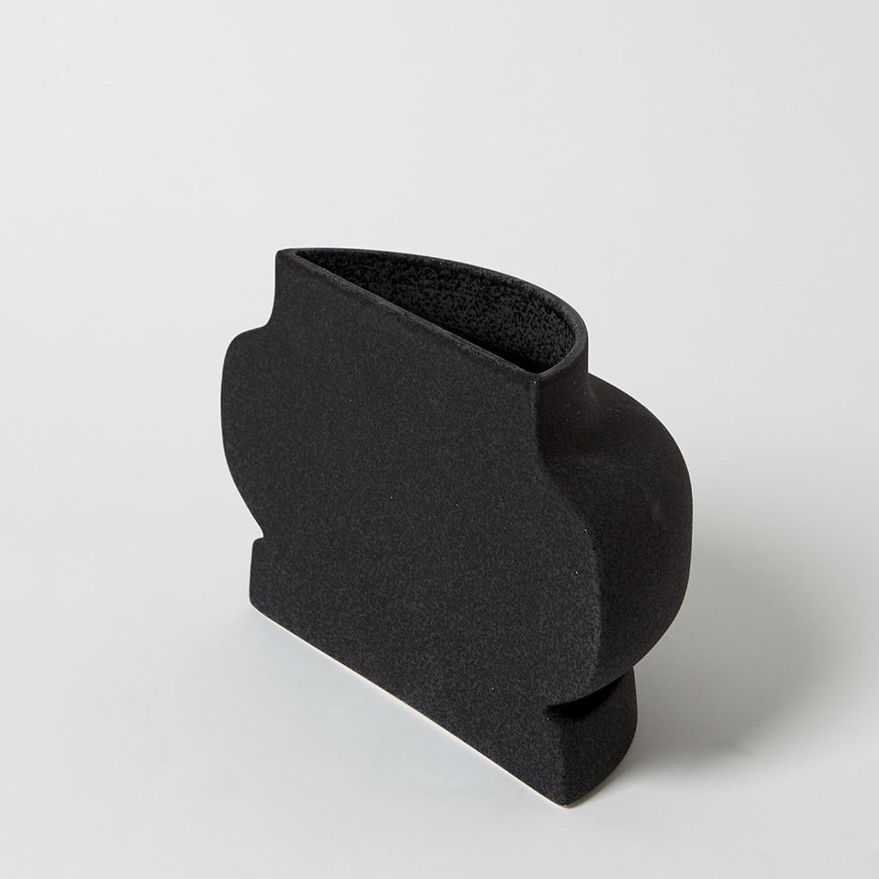 Unique in design, our Flat Back Collection of vases take up very little footprint unless you take two and put them back to back to recreate a complete piece. The black crust and matte white glazes can be paired together to form truly unique accessories. Made of Portuguese ceramic.