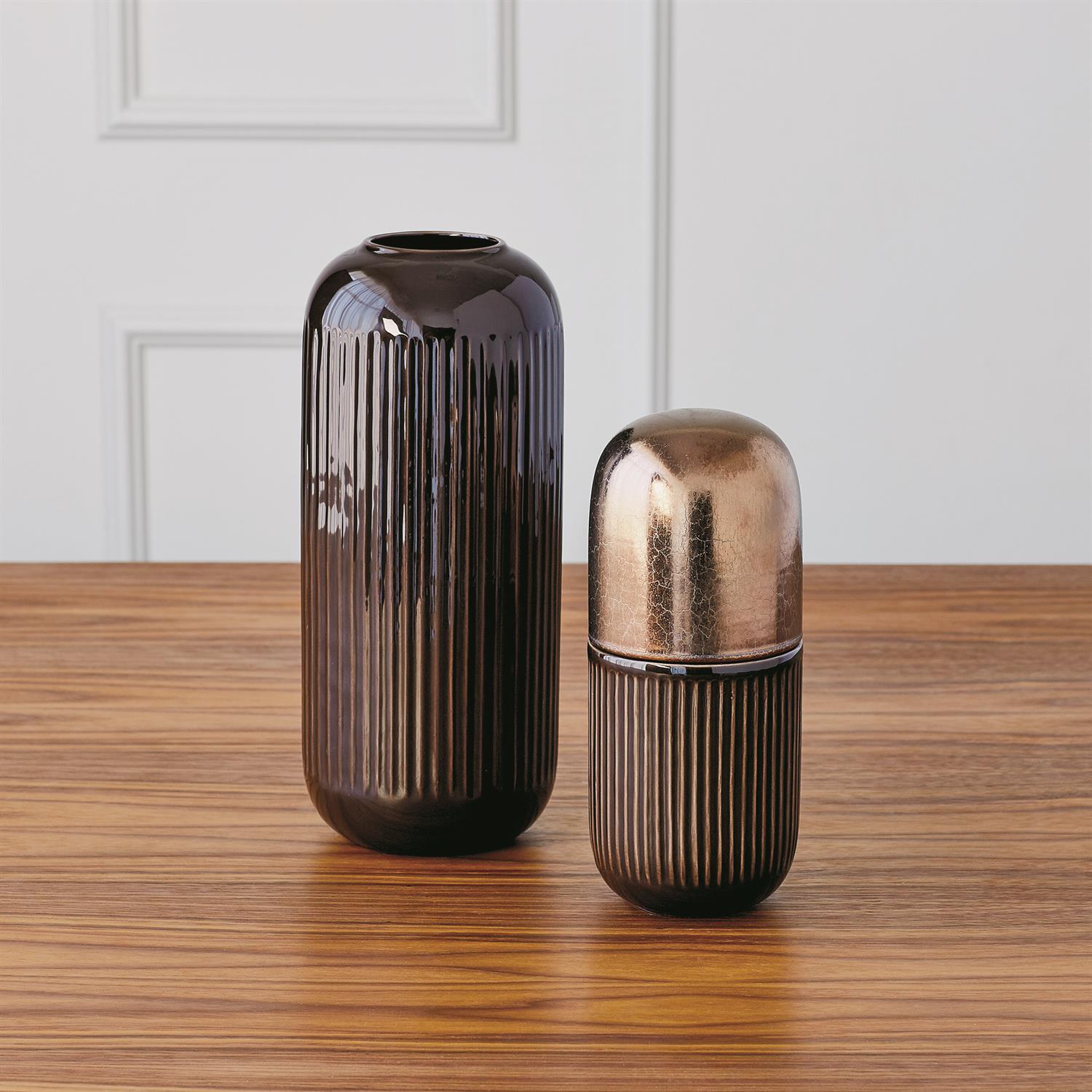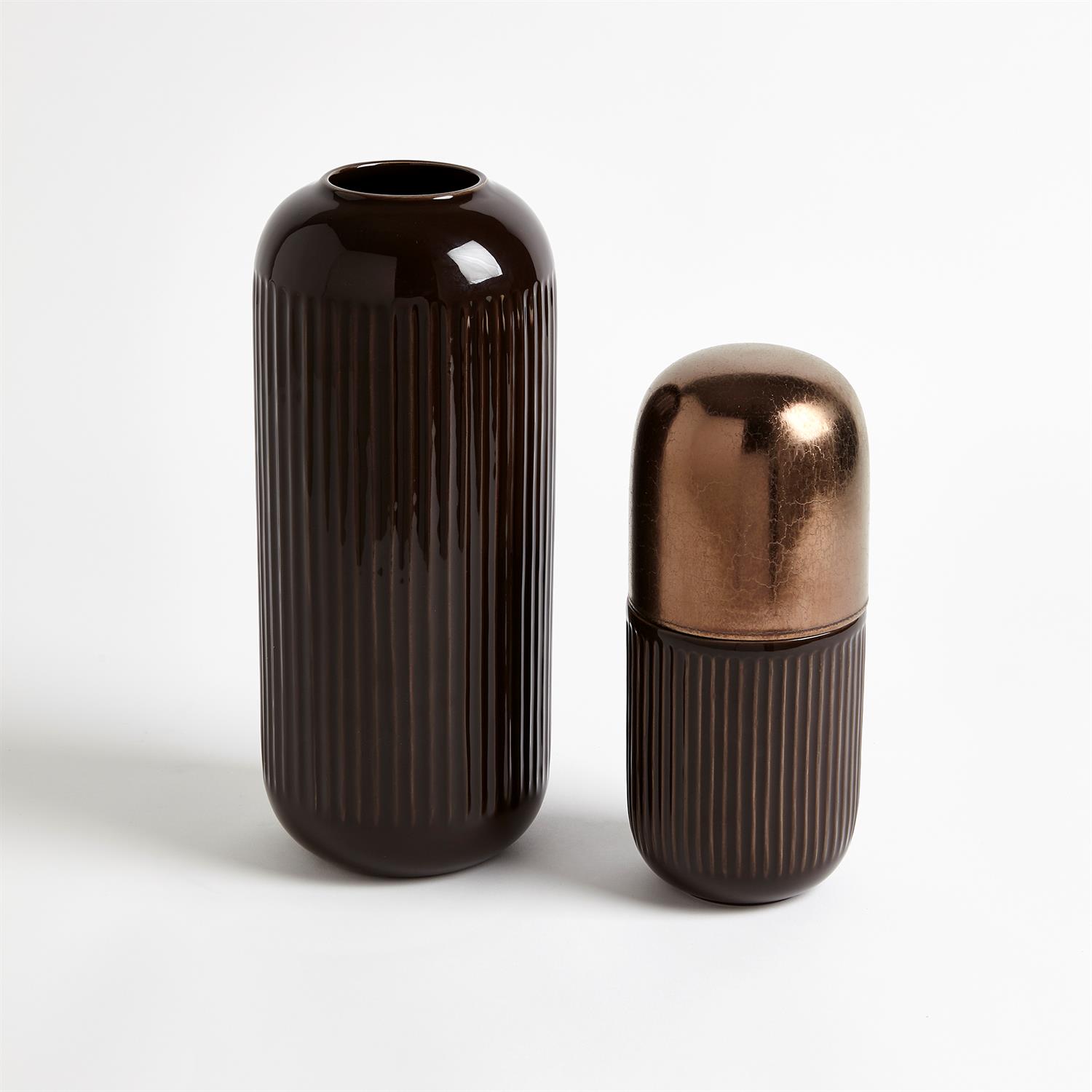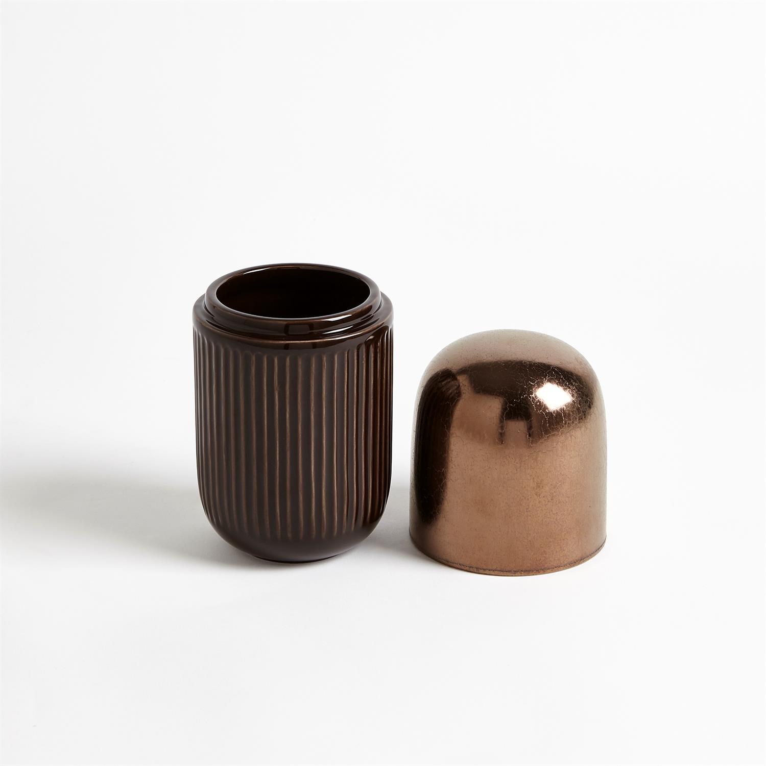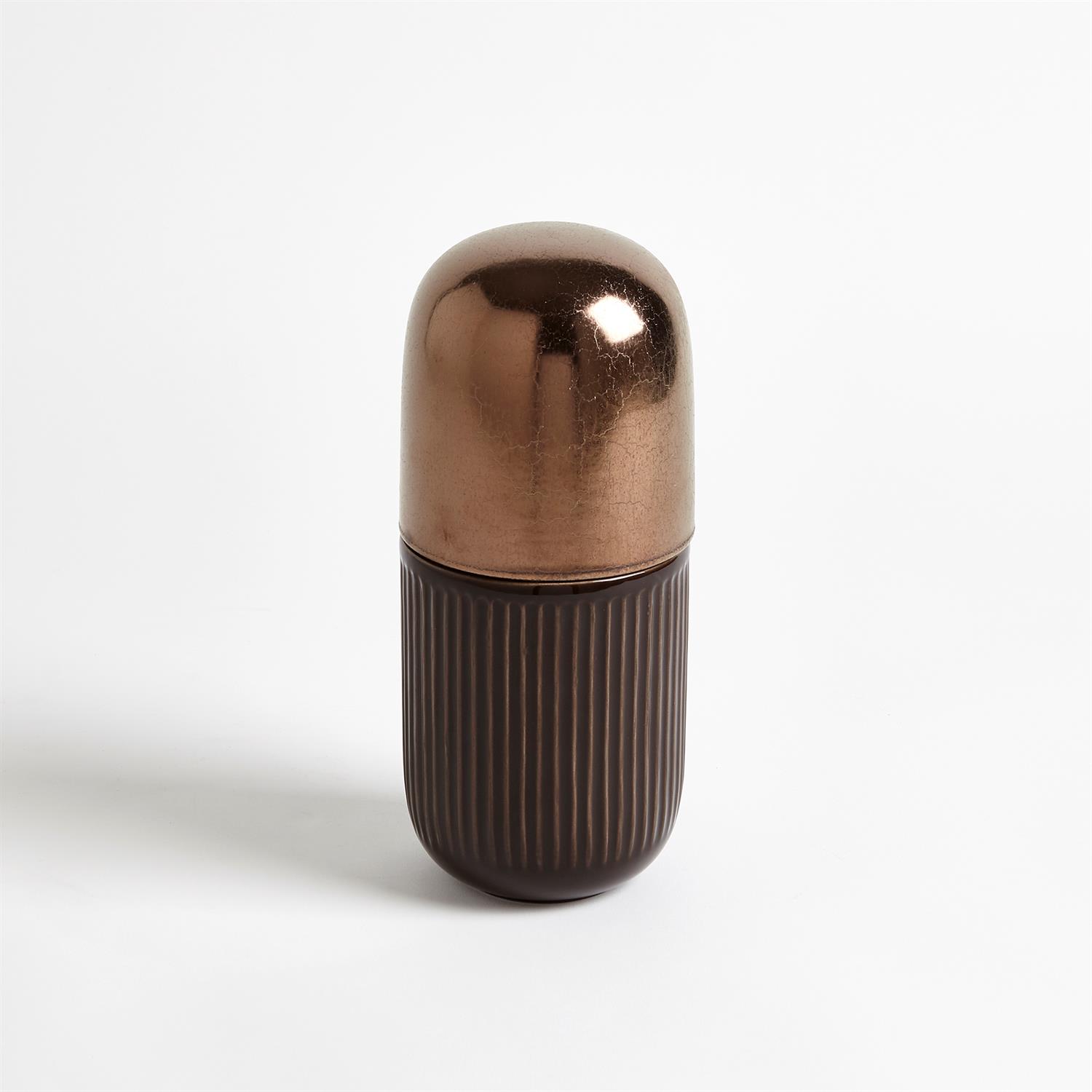 青銅色膠囊陶瓷罐由葡萄牙手工製成,罐子本身可以打開,有著優雅的兩種色調。
