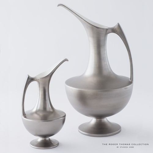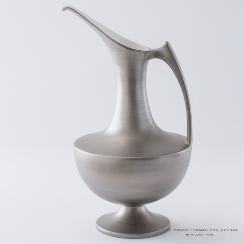 A clean, modern interpretation of a classic Grecian ewer is elegantly expressed in this beautiful platinum finish. Made of fine Portuguese ceramic.