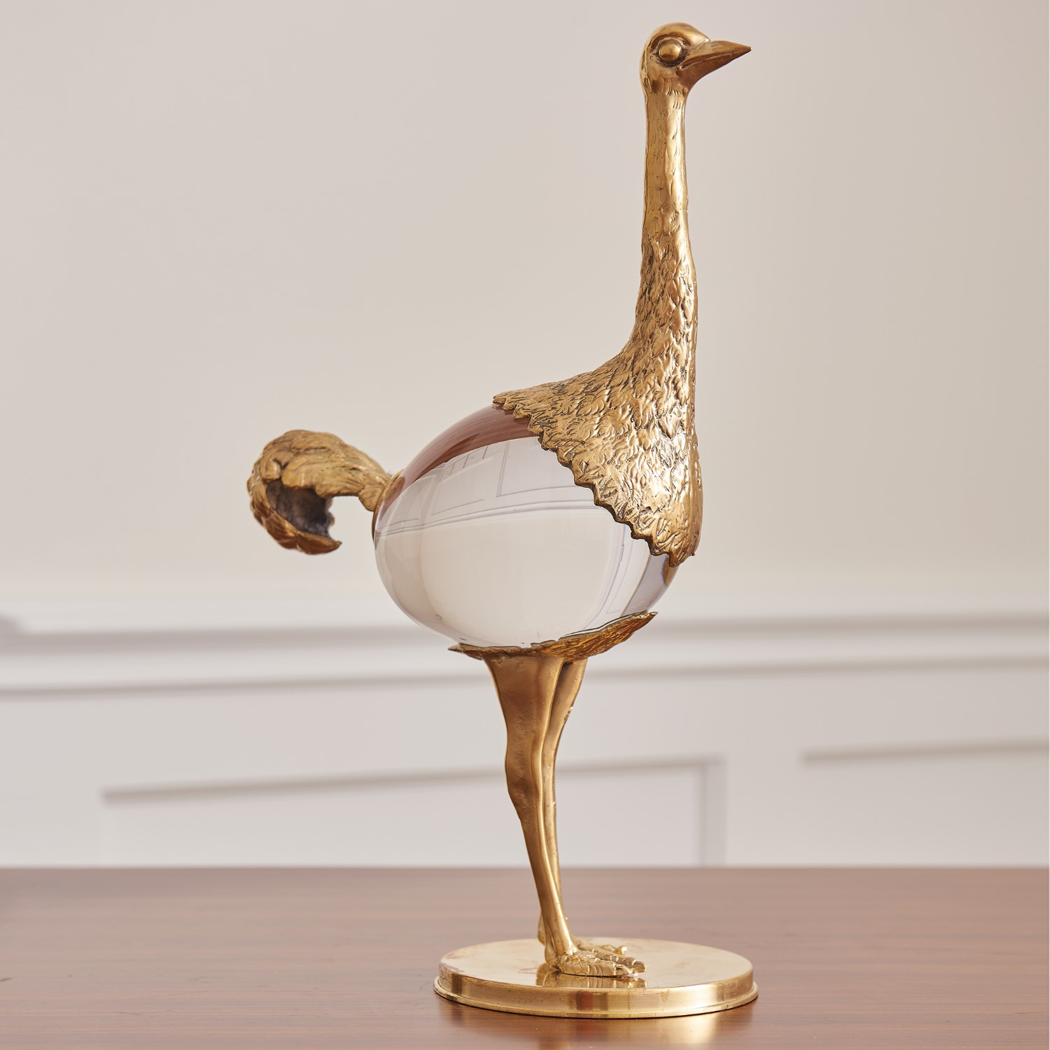Brass and crystal join forces to create an elegant Ostrich sculpture.